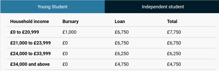 In Scotland at the moment the situation for full-time undergraduates is what’s shown below (young students top, mature students bottom). The sums are the same wherever students live or study.