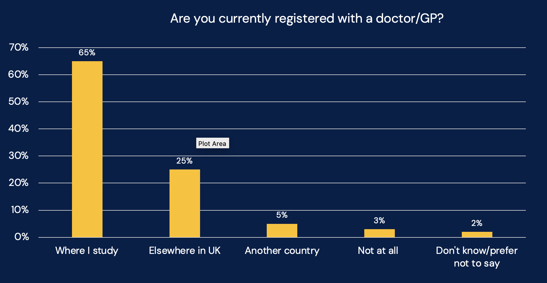 The good news in our polling is that most students (93 per cent) are registered with a GP. The problem is that only 65 per cent are registered near their place of study. A quarter (25 per cent) remain registered elsewhere in the UK, while five per cent maintain registration in another country: