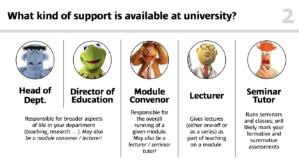 I also outline clearly the available sources of support, how to contact them, and when to use them, from personal tutors to module convenors, careers consultants, and seminar tutors.