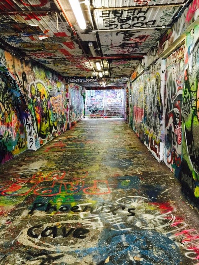 The Graffiti Tunnel is a legal graffiti wall running between the Holme Building and Manning House. It is the only site in the University where paint may be used. The university and campus security guards only request that the artwork is “clean” and that the door handles are left alone!