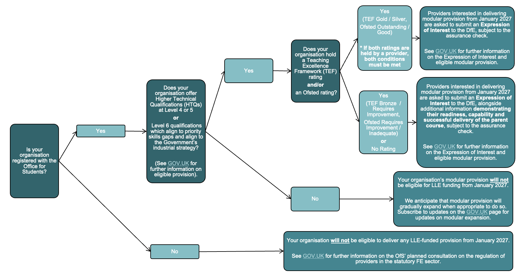 This process will involve an “assurance check” – seemingly run centrally by DfE, rather than Skills England as might have previously been expected. There’s a wonderful flowchart in the provider guide, which you may or may not be able to read depending on how enormous your screen is: