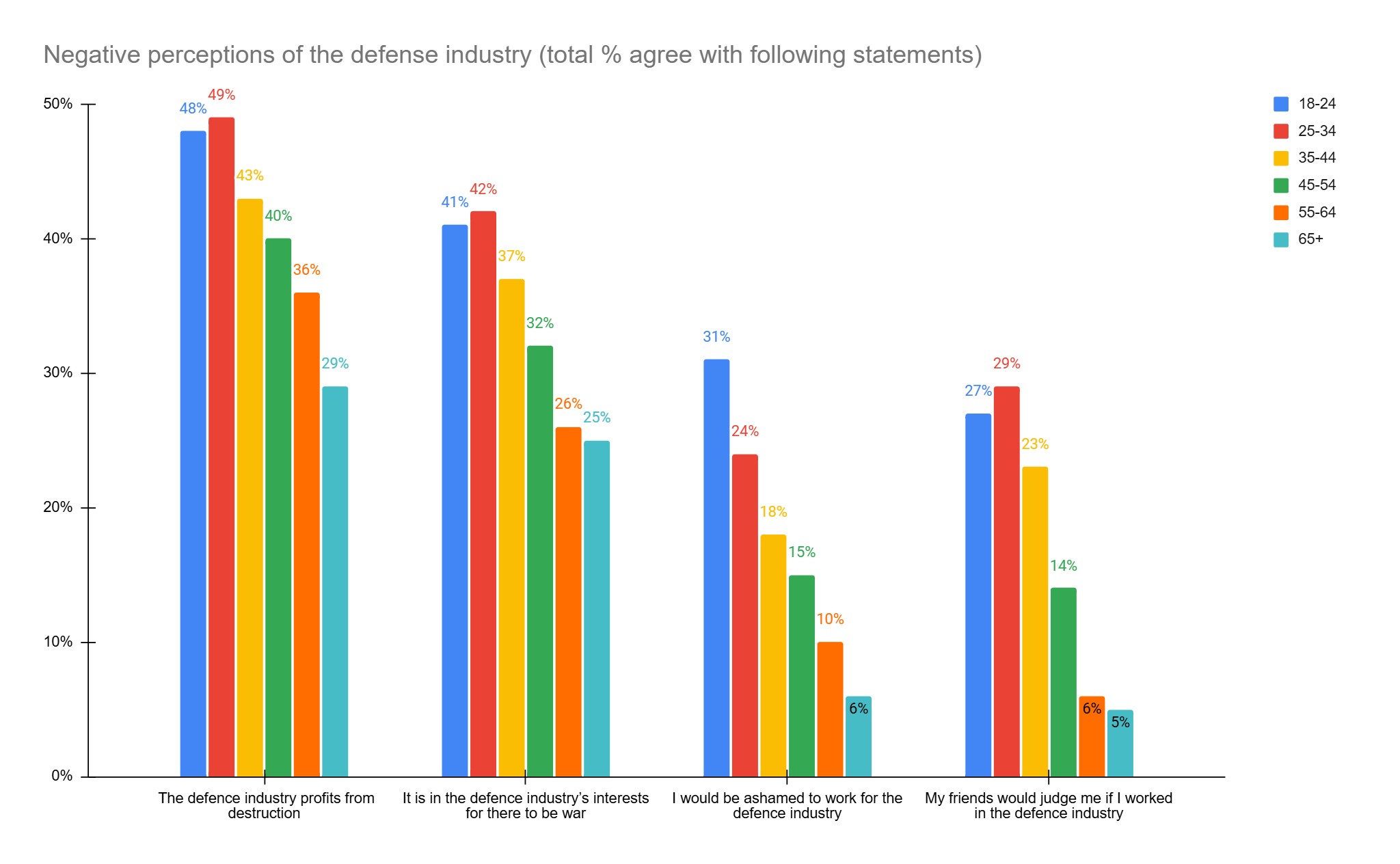 Many universities are trying to balance their industrial R&D and skills partnerships with the defense sector with a growing generational divide in attitudes towards the defense industry. Negative perceptions of the defense sector are particularly entrenched among Gen Z. Just under a fifth (17 per cent) of the general population say that they would be ashamed to work for the defense industry – but this rises to 31 per cent of 18-24 year olds. Nearly a third of 18-34 year olds say their friends would judge them if they worked in the defense industry. Going too hard on defence and being seen to be doing too much may risk a knock-on impact on student recruitment.
