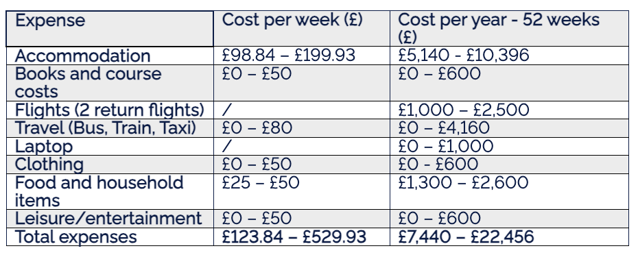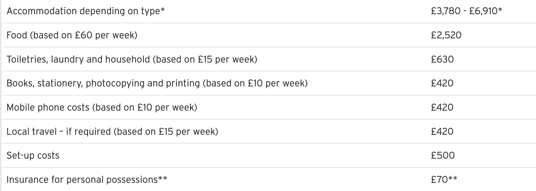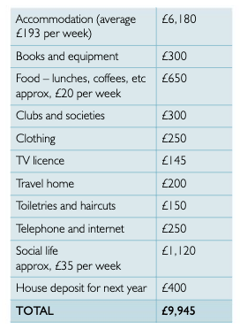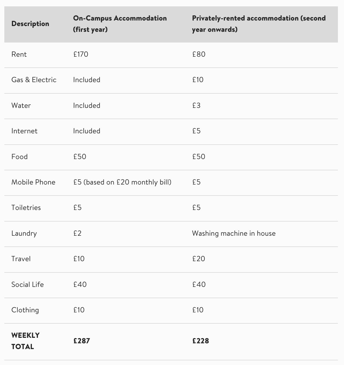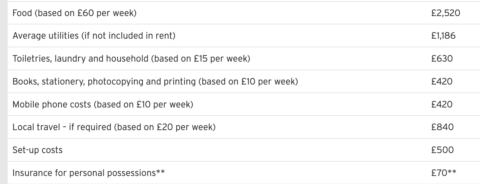The good news is that the pricing for accommodation and food has been updated. The bad news is that the rest of the costs haven’t been touched since at least 2015, when this table appeared in the undergraduate prospectus: