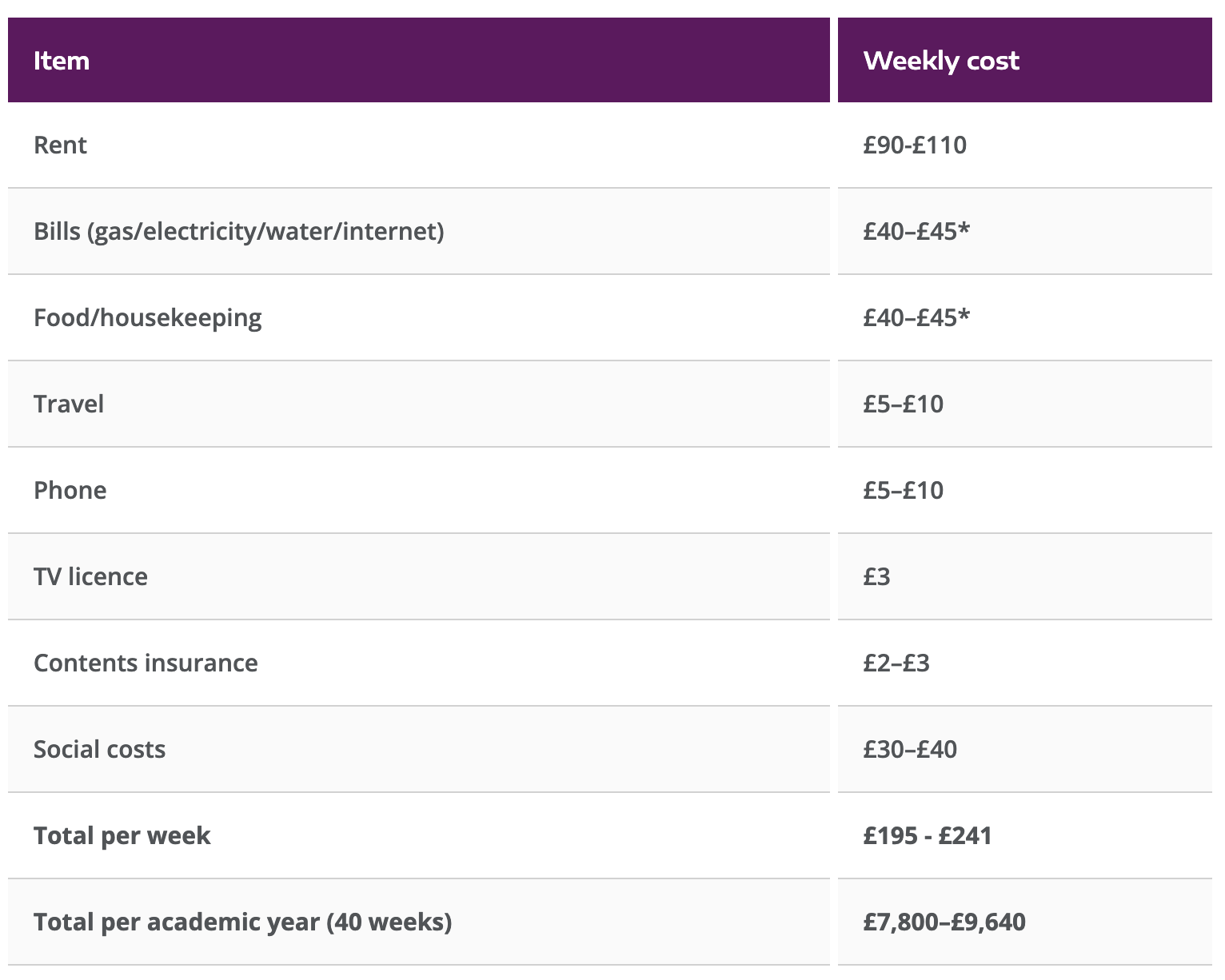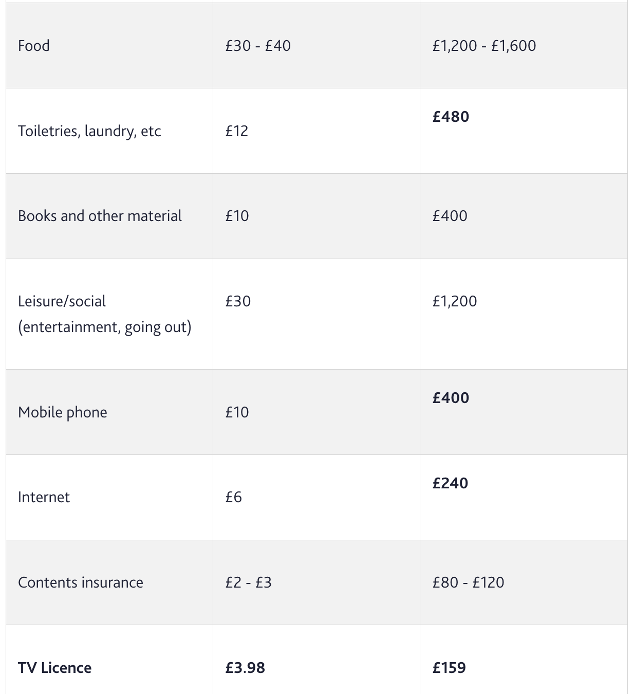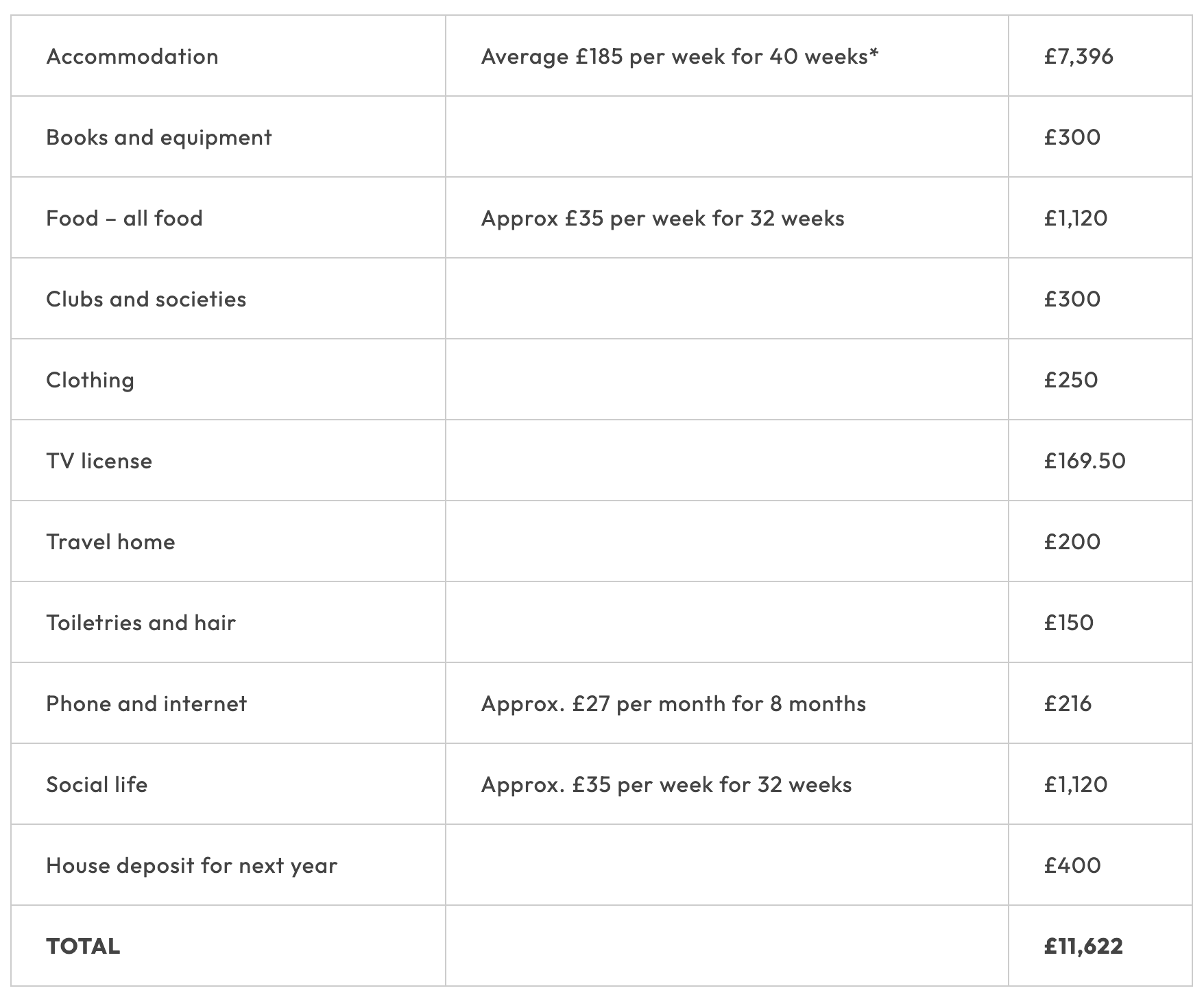 That’s the same figure it was headlining with in 2022, despite some of the components going up since – although apparently, next year its students will pay the same that they did 2 years ago for contents insurance, travel, course essentials, clothes, personal items, sports memberships and going out.