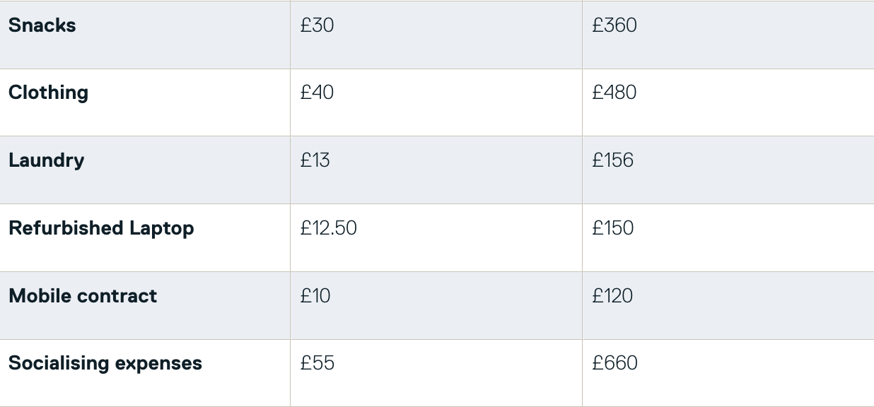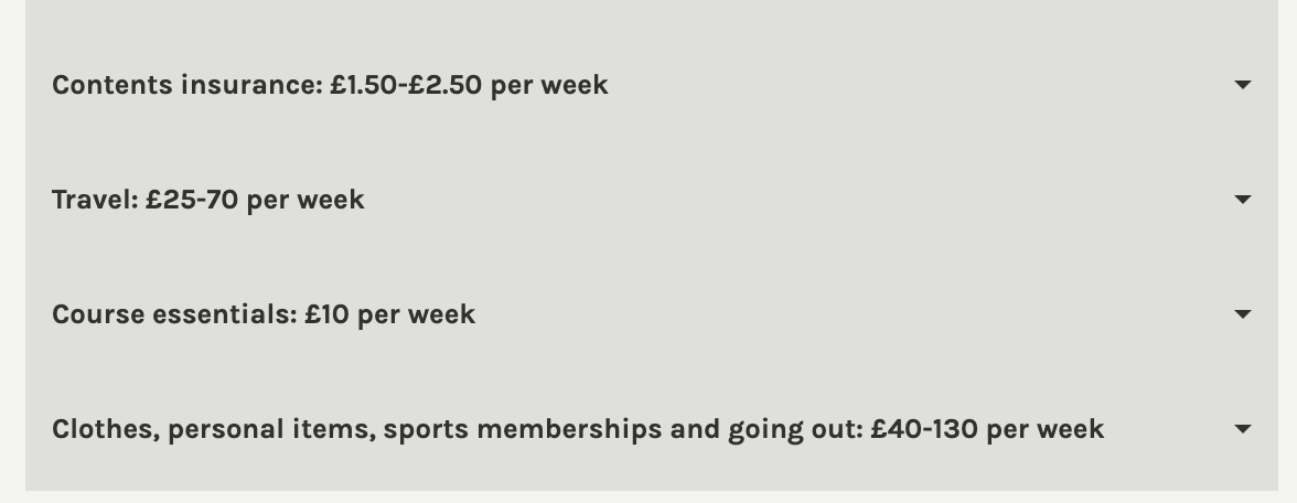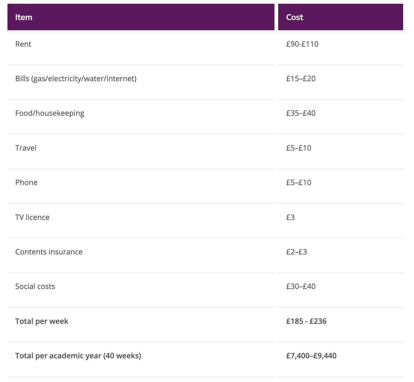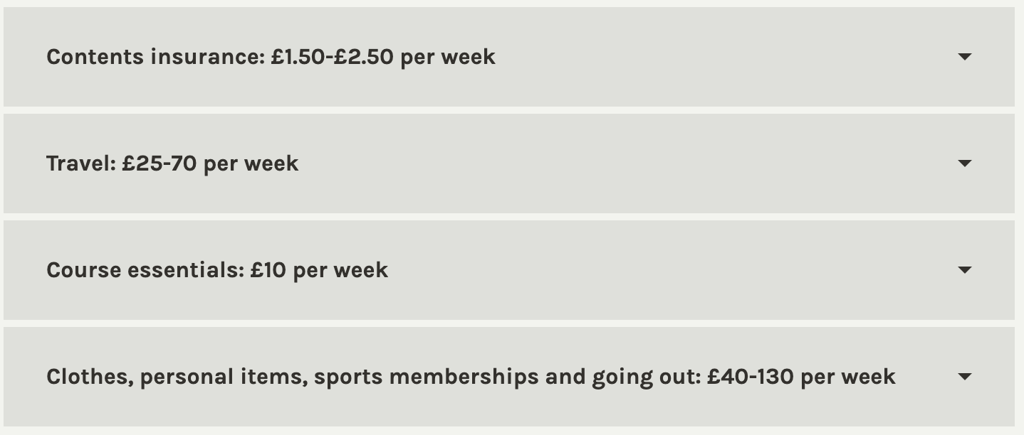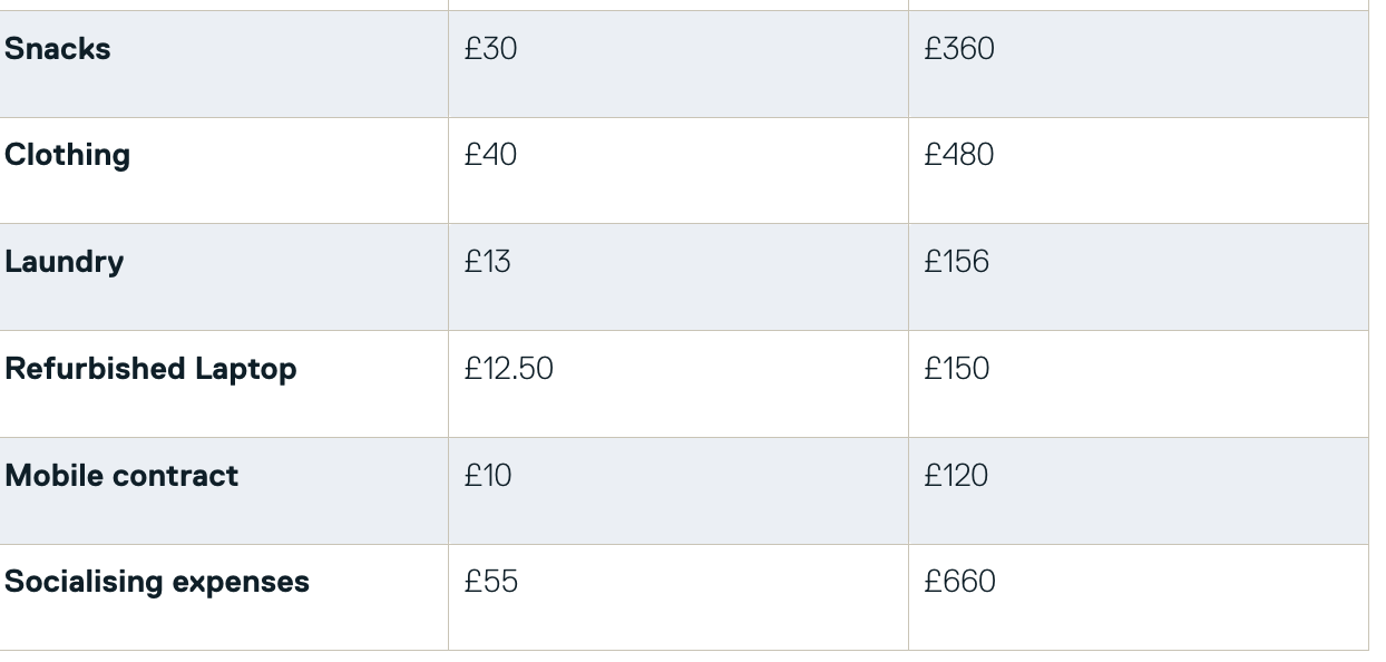 That’s the same figure it was headlining with in 2022, despite some of the components going up since – although apparently, next year its students will pay the same that they did 2 years ago for contents insurance, travel, course essentials, clothes, personal items, sports memberships and going out.