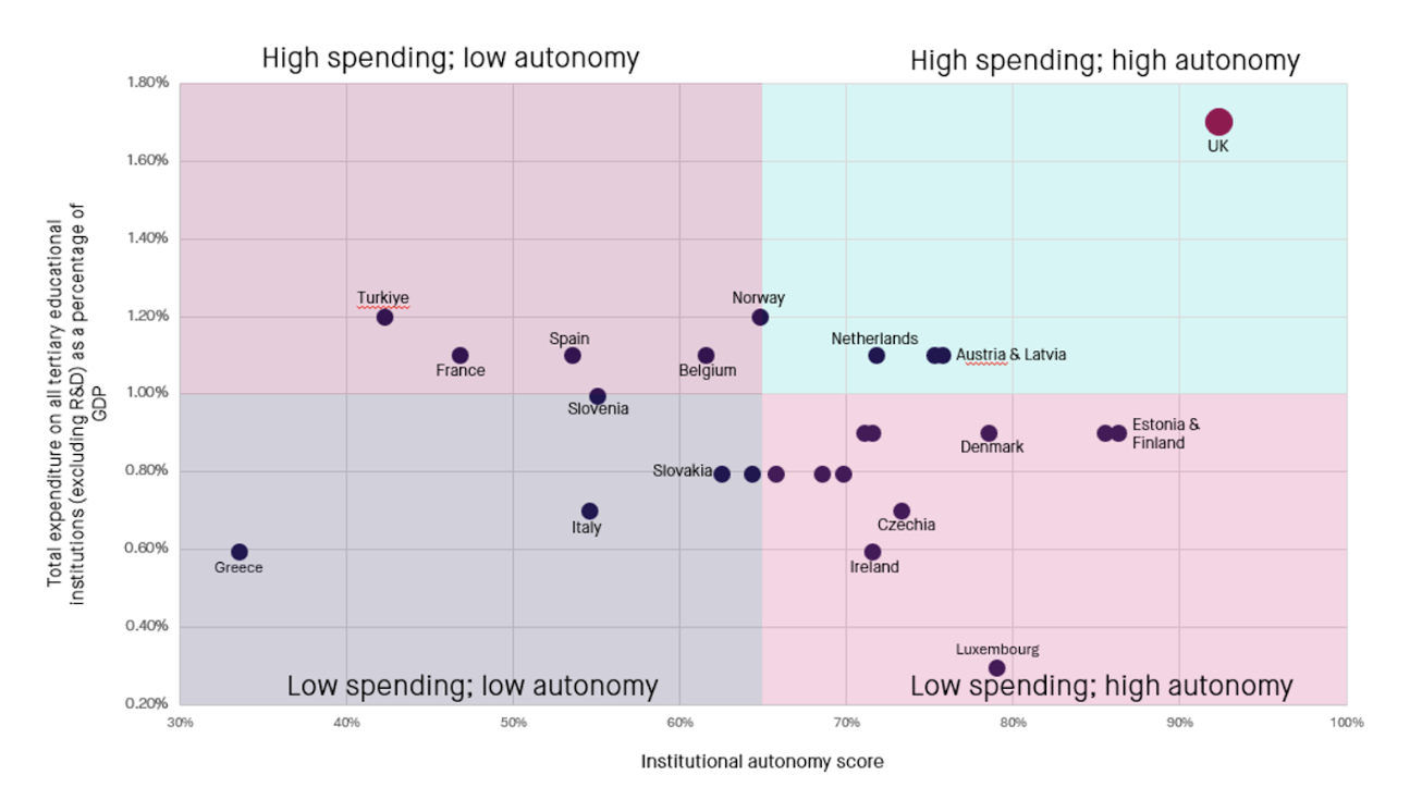 At the same time, universities in the UK are afforded an extraordinary amount of institutional autonomy relative to other countries:
