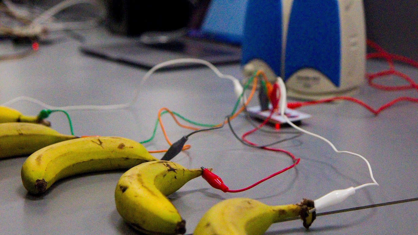 This was learning science the fun way; creating glittery slime, bending coloured lights, freezing (then smashing) fruit, examining fossils, analysing kiwi fruit DNA, and – of course – making a banana piano. The kids seemed to enjoy the safety specs too; some things never change.