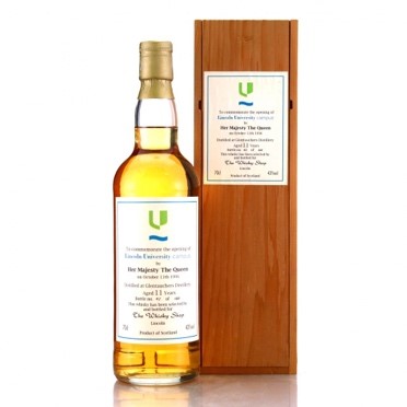This very limited bottling of 11 year old Glentauchers (just 100 were produced!) commemorates Queen Elizabeth II opening the University of Lincoln campus in 1996. If you are at Lincoln and have one of these tucked away in your office don’t make retirement plans just yet – a bottle recently sold for an astonishing £51.