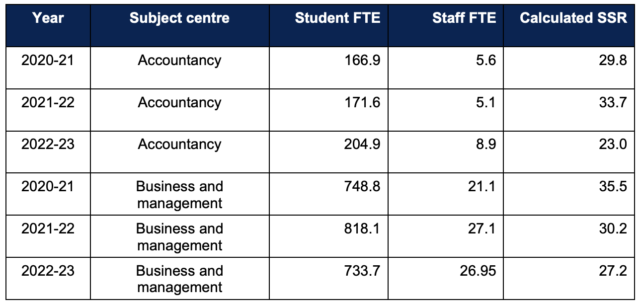 As well as the numbers, the team also noted that a high proportion of academic staff were studying for postgraduate (primarily doctoral) qualifications – a positive in principle, but also a high proportion of staff with study commitments representing “additional challenges” to levels of academic staff resource available for student support.