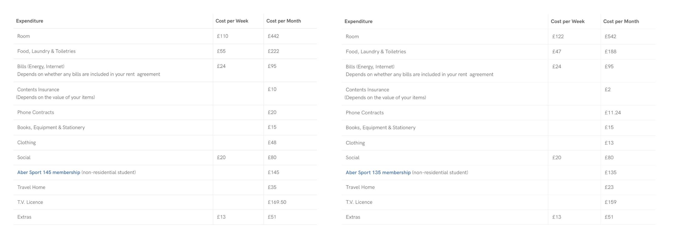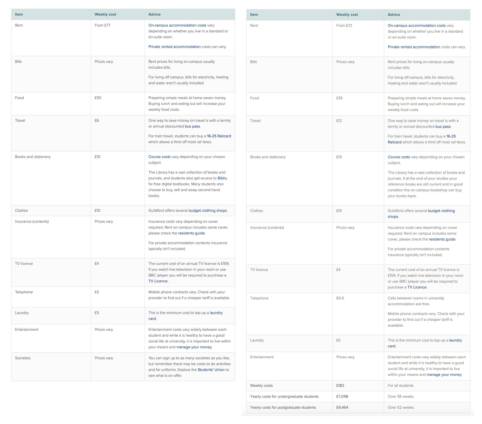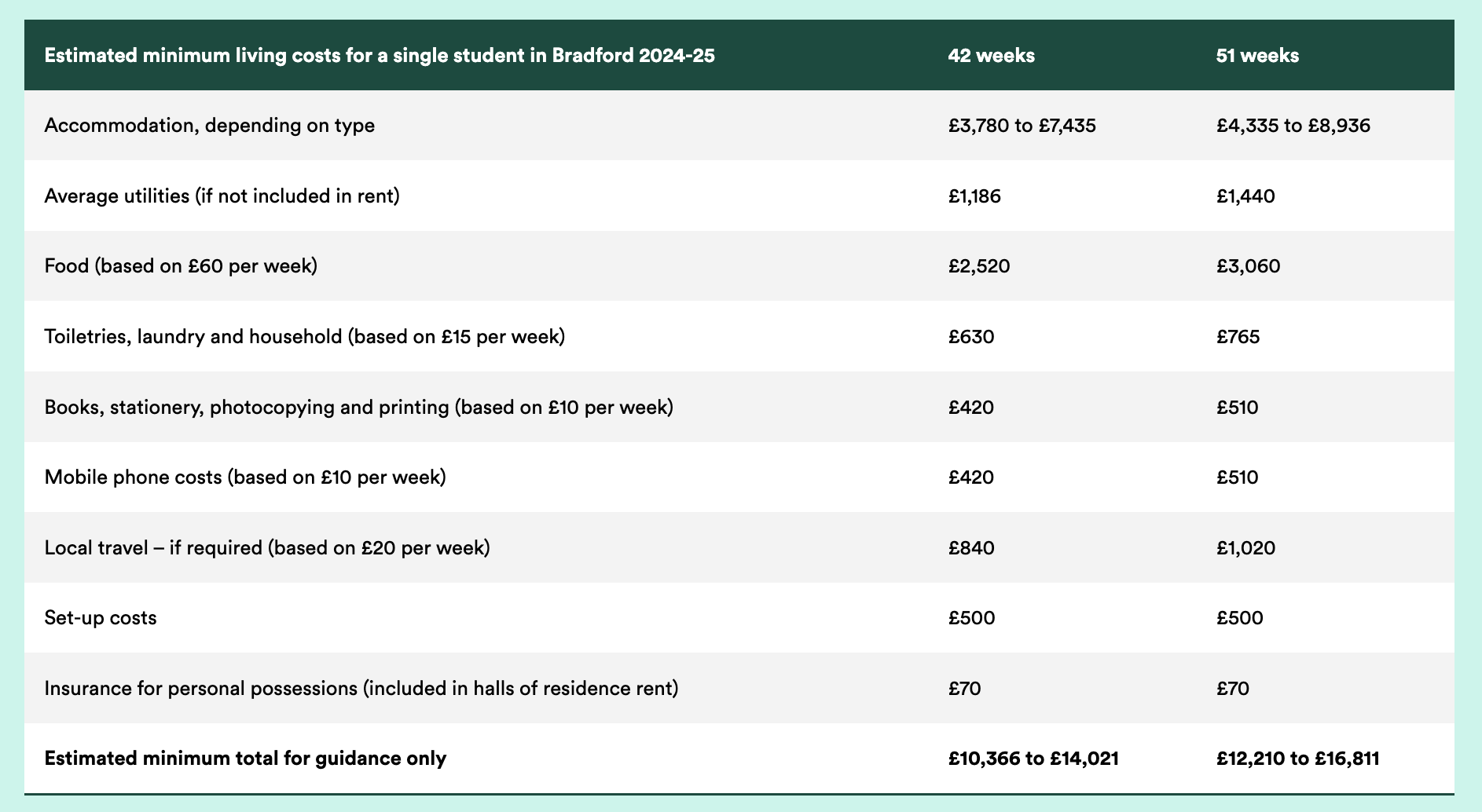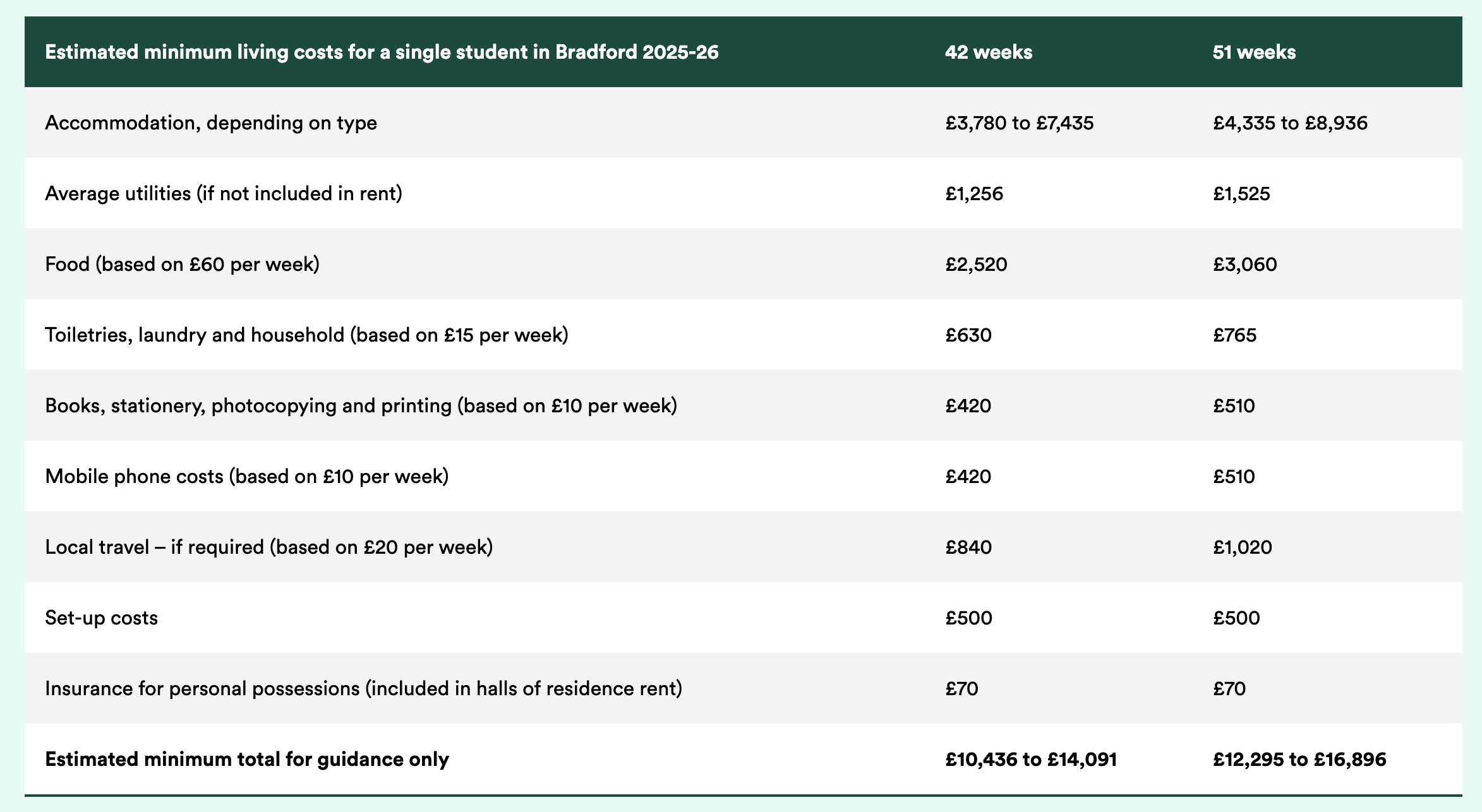 Sometimes, a picture is painted of painstaking research carried out by dedicated money advisors. Here’s a table that says the minimum costs have been estimated by the university’s support teams:
