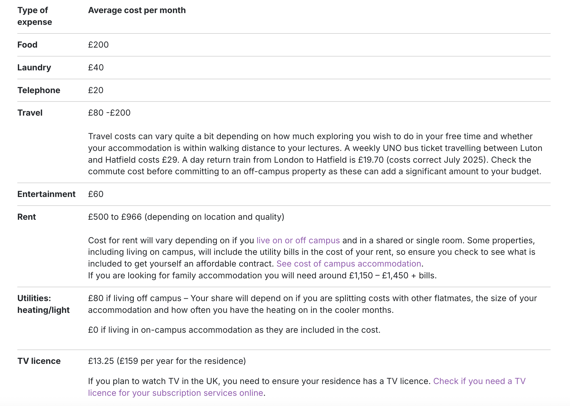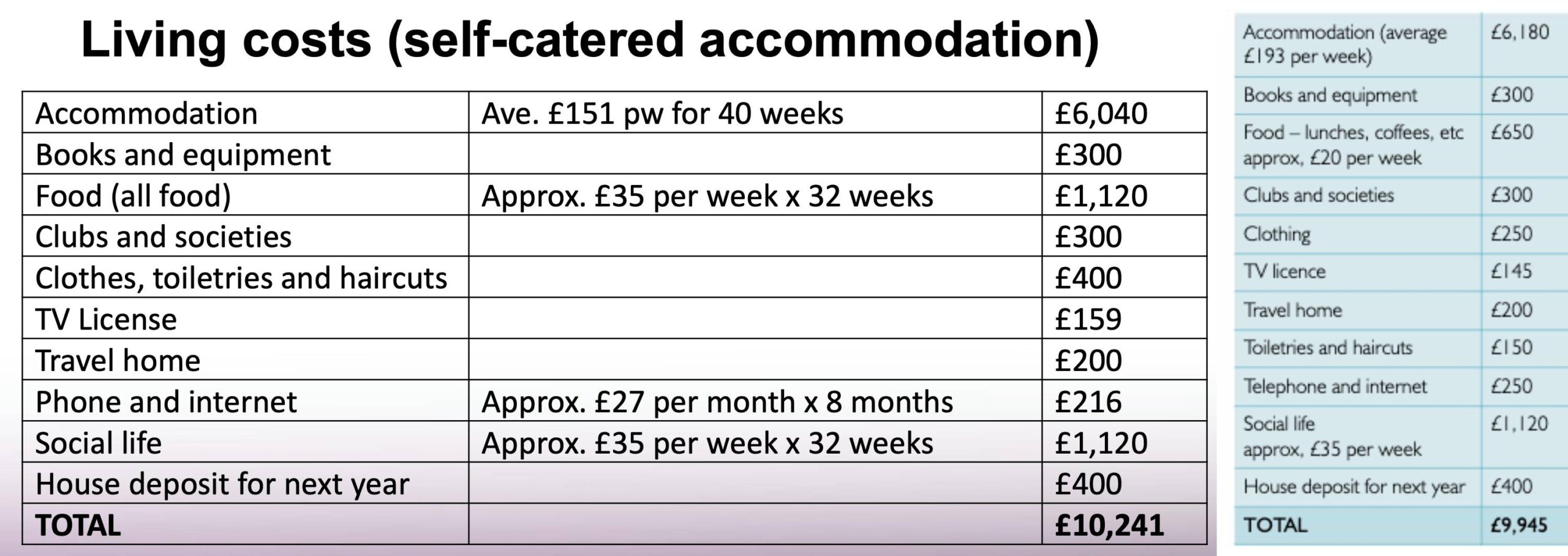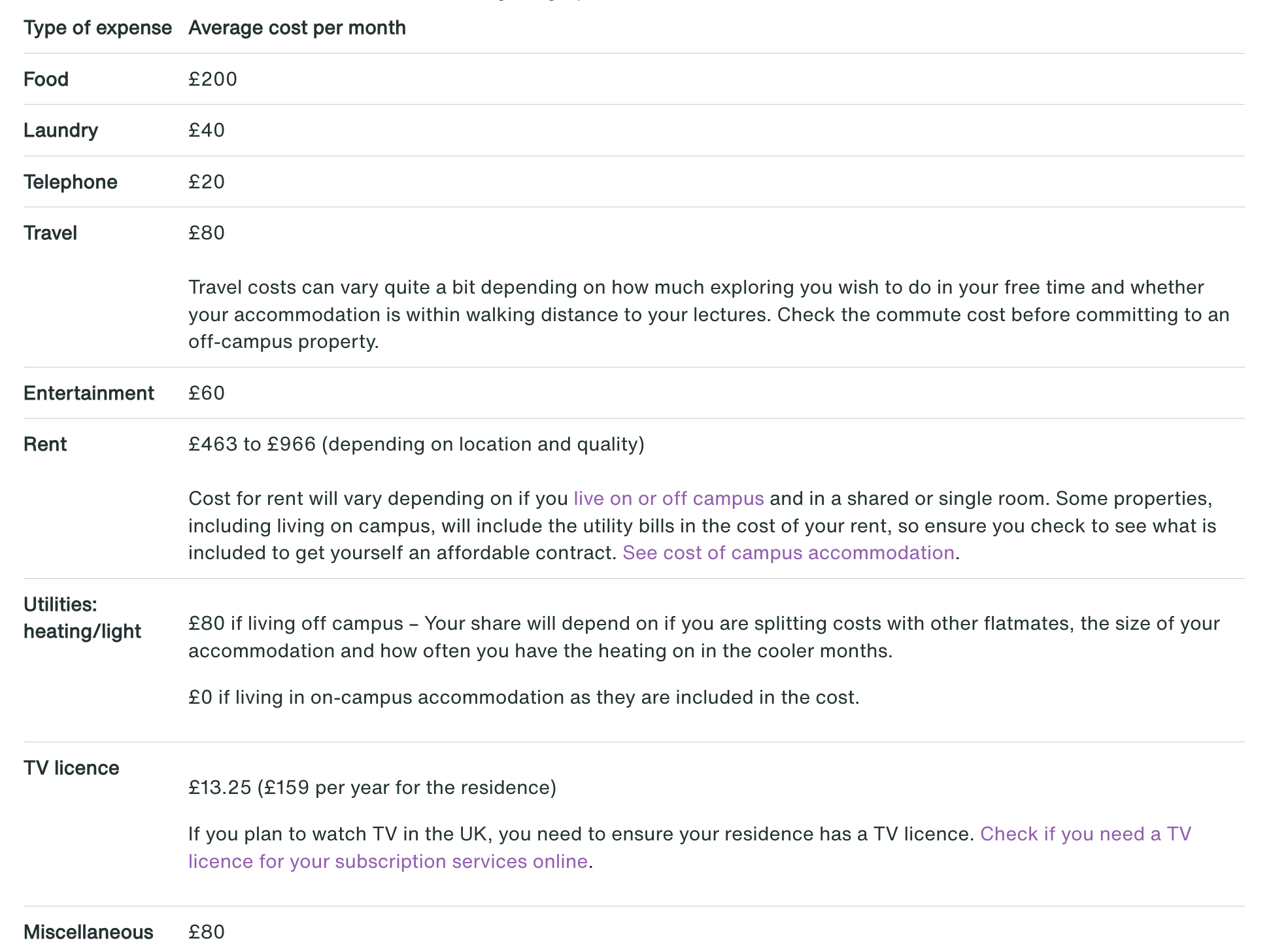 Here’s one which says that in comparison to some countries, the UK appears to be an expensive place to live – but with sensible planning and budgeting, students should find it affordable to live and study here. Until they get used to the cost of living here in the UK, they will need to plan and keep to a budget. A budget that the university hasn’t updated since 2022: