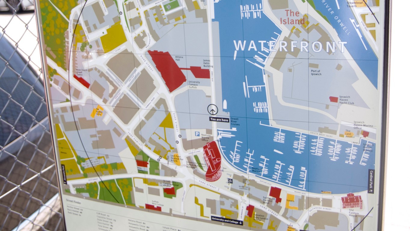 The campus is a mile-long walk by the River Orwell and the regenerating waterfront.