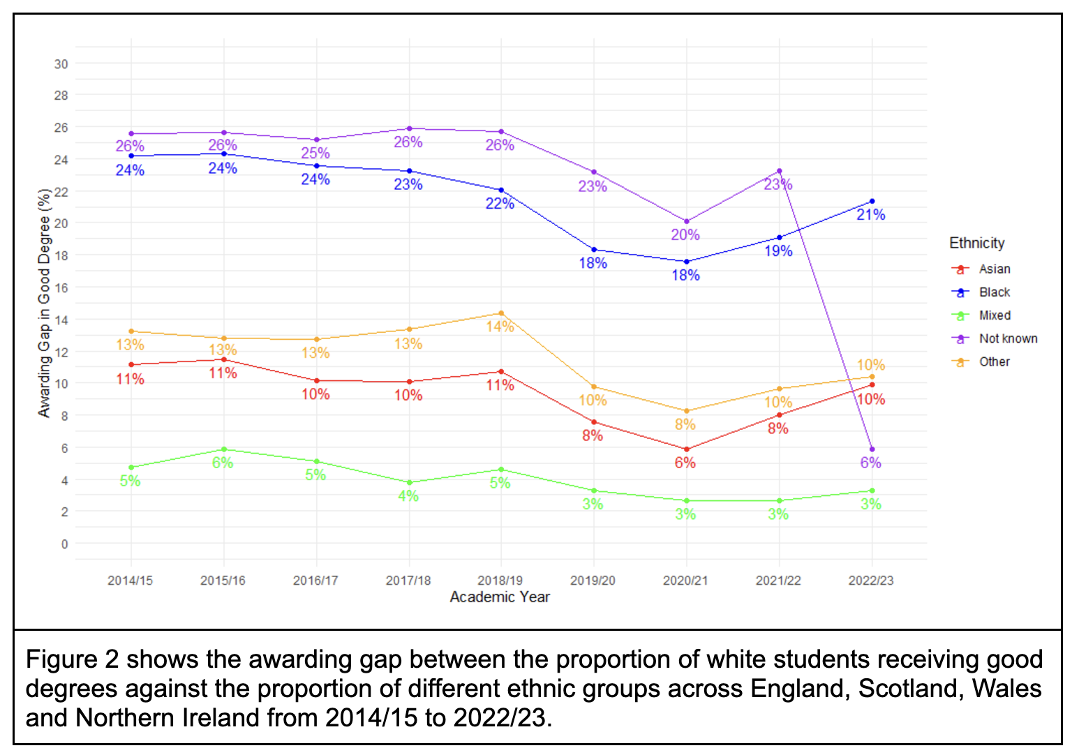 Universities have rightly recognised the awarding gap as an important issue and many are working hard to reduce it, introducing a variety of interventions to attempt to tackle it and monitoring their performance through a dashboard.