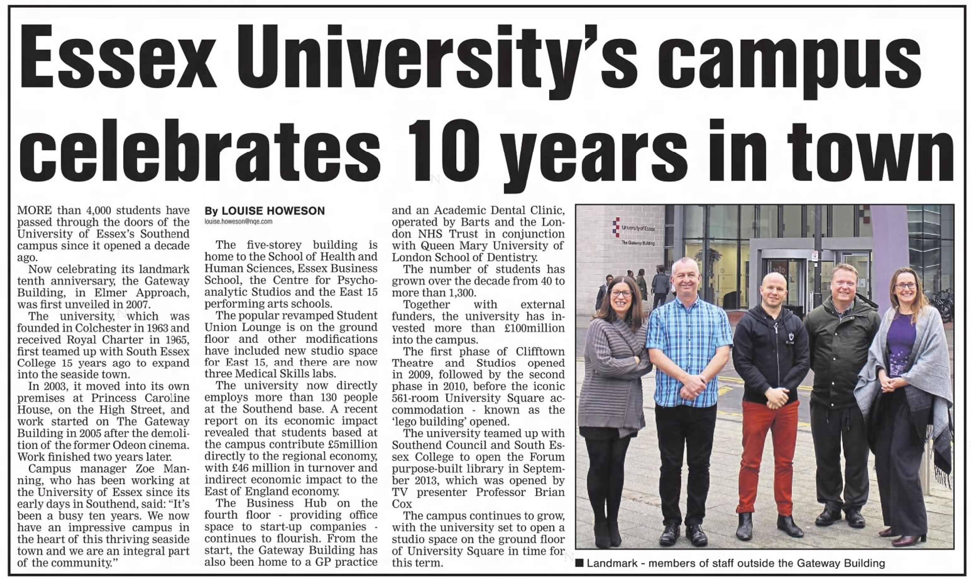 2001’s Thames Gateway South Essex vision even identified Southend’s future role as the cultural and intellectual hub and a “higher education centre of excellence for South Essex.”