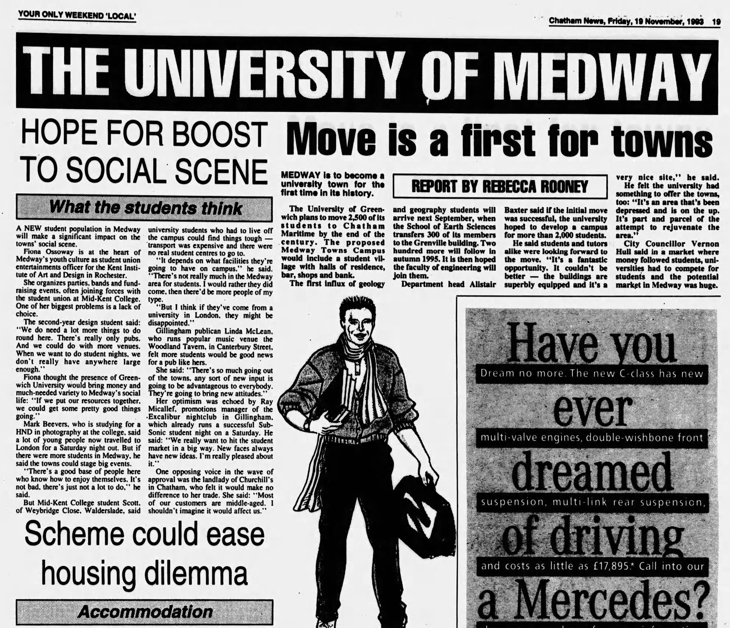 The Universities at Medway partnership between Kent, Greenwich, Canterbury Christ Church and Mid-Kent College was talked up in SEEDA case studies as a £50 million dockyard campus replacing thousands of lost shipbuilding jobs and housing over 10,000 students.