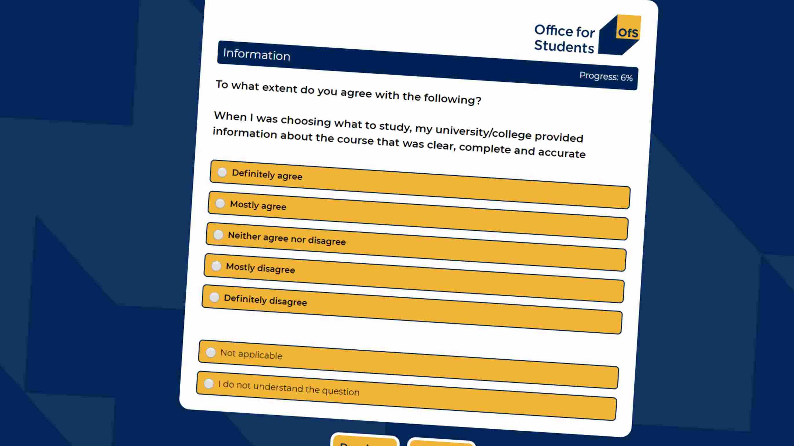 Officially, OfS says that the pilot takes a similar approach to the National Student Survey (NSS) of undergraduate students (it certainly uses the same Likert scale) and it is to use the findings to understand the priorities of taught postgraduate students, field-test survey questions, assess the long-term feasibility of launching a survey nationwide, and contribute to the future development of a regular PGT experience survey that is relevant to PGT students across England.