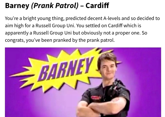 Even more unlikely than celebrity chefs and crisps is this rather niche listing: ‘Which Greggs menu item is your uni?’ Can’t wait to see these in the next online prospectus.