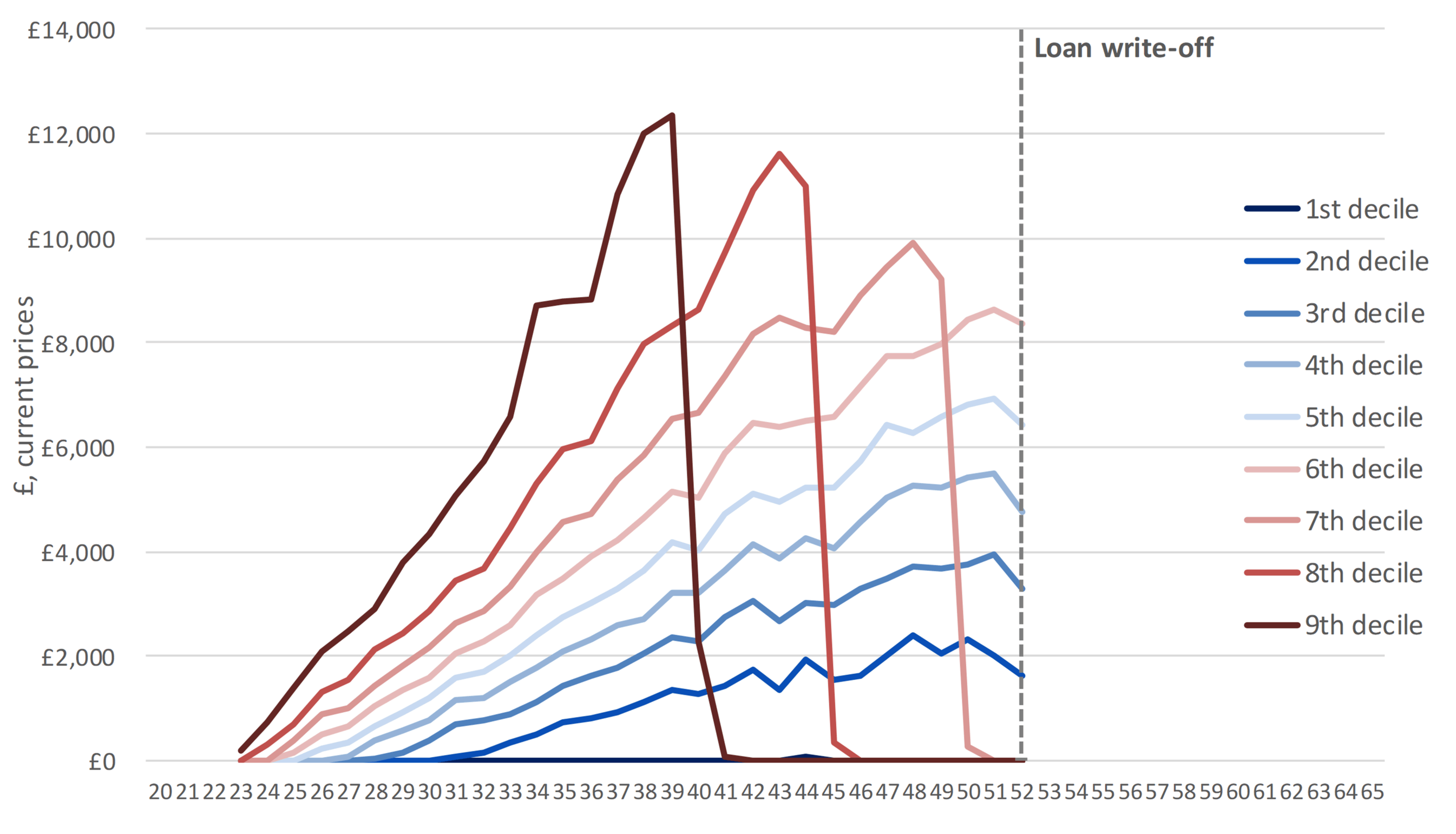 - High earning (predominantly male) graduates, who would repay less, and pay off the lower loans more quickly;