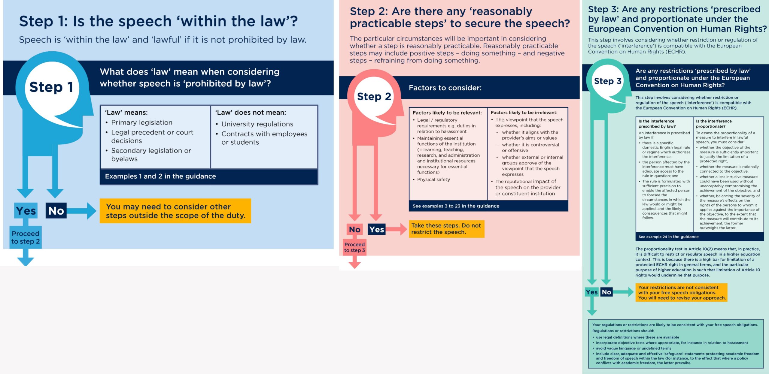 Much of that flows from a newly reworked version of what counts as free speech within the law that translates some of the case law and principles set by the ECHR and the UK High Court in cases like Higgs v Farmor’s School. As such, while there’s still lines in there like “The Act protects free speech within the law – it does not protect unlawful speech”, there’s now much more helpful material on the different ways in which free speech might be curtailed or interfered with given other duties.