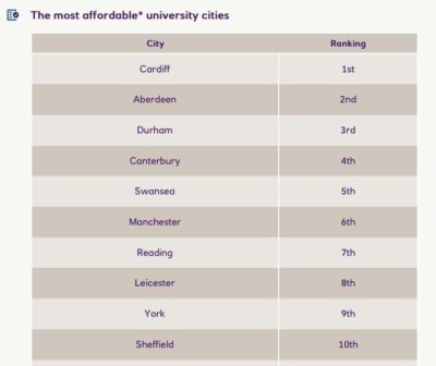And then we have the Natwest Student Living Index which claims to rank the ‘most affordable’ university cities: