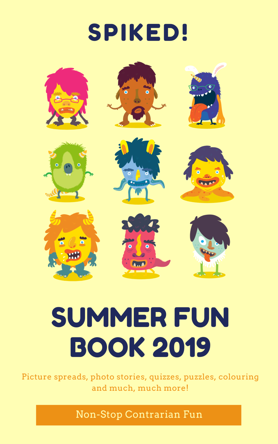 - Everyone’s favourite holiday read – it’s the Spiked! Bumper Summer Fun Book 2019, once again with all your favourite pseudonymous scribblers adopting thoroughly contrarian positions on just about anything. With pull out picture spreads, photo stories, quizzes, puzzles and colouring.