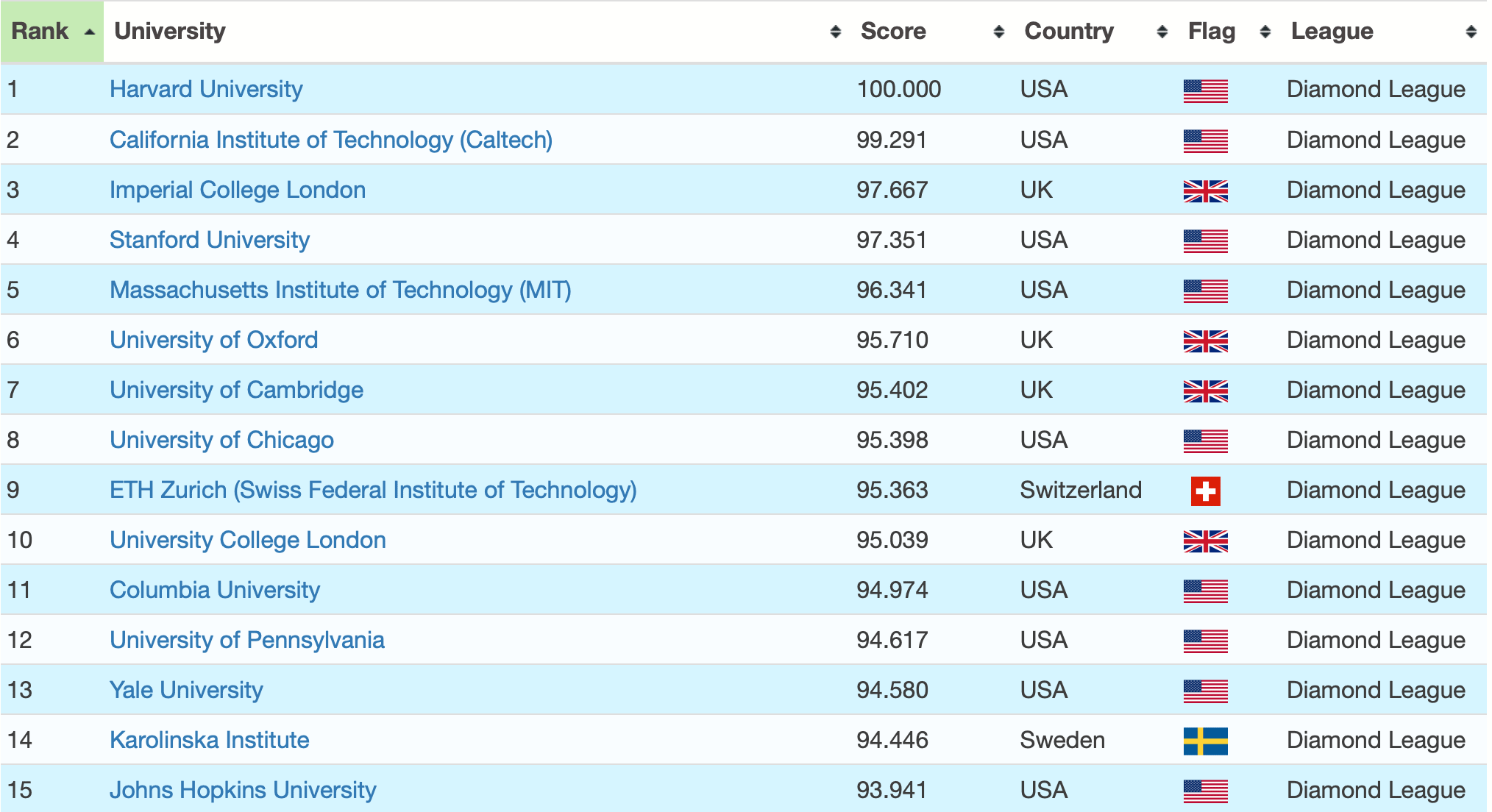 First up is the National Systems Ranking by Universitas 21, the ninth time they have produced this. There hasn’t been a lot of movement in the ranking over the years but it has the distinct advantage that there is not a lot of scope for game-playing by participants: