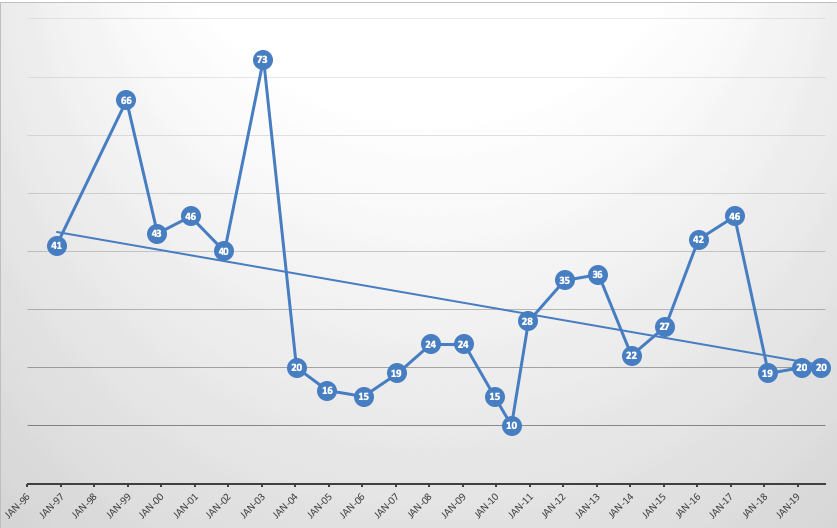 The length of funding letters has seen two peaks in the last couple of decades: January 2003’s letter was 73 paragraphs long and the December 1998 note ran to 66 paragraphs. The November 1999, November 2000 and December 2001 letters ranged from 40 to 46 paragraphs but the January 2004 letter and subsequent missives tend towards the more traditional brevity of only 15-25 paragraphs of instruction to HEFCE. A decline which matched the general trend of public funding for higher education perhaps until that is we got to 2016 when we shot back up to 42 paragraphs.