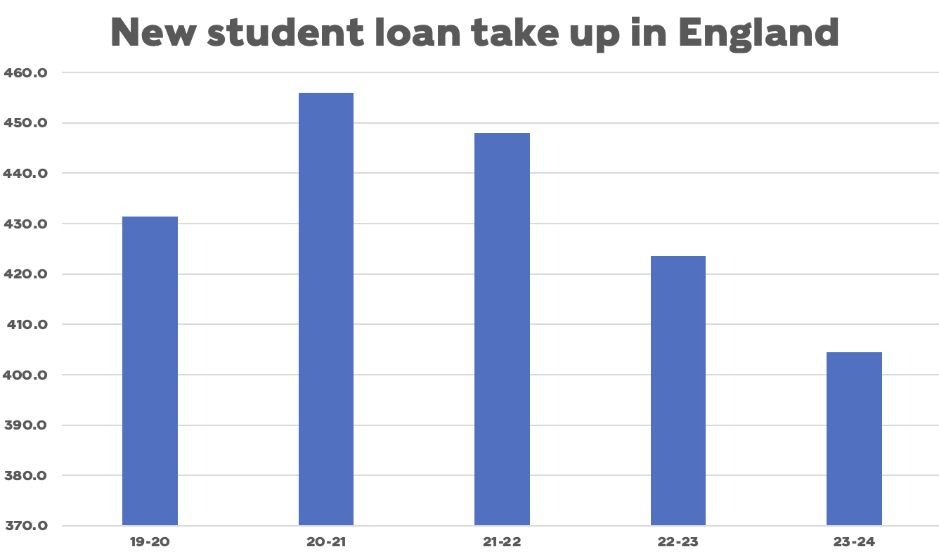And that’s all while home demand contracts too – one aspect of last week’s student loan figures that many missed was worrying numbers on England-domiciled take up: