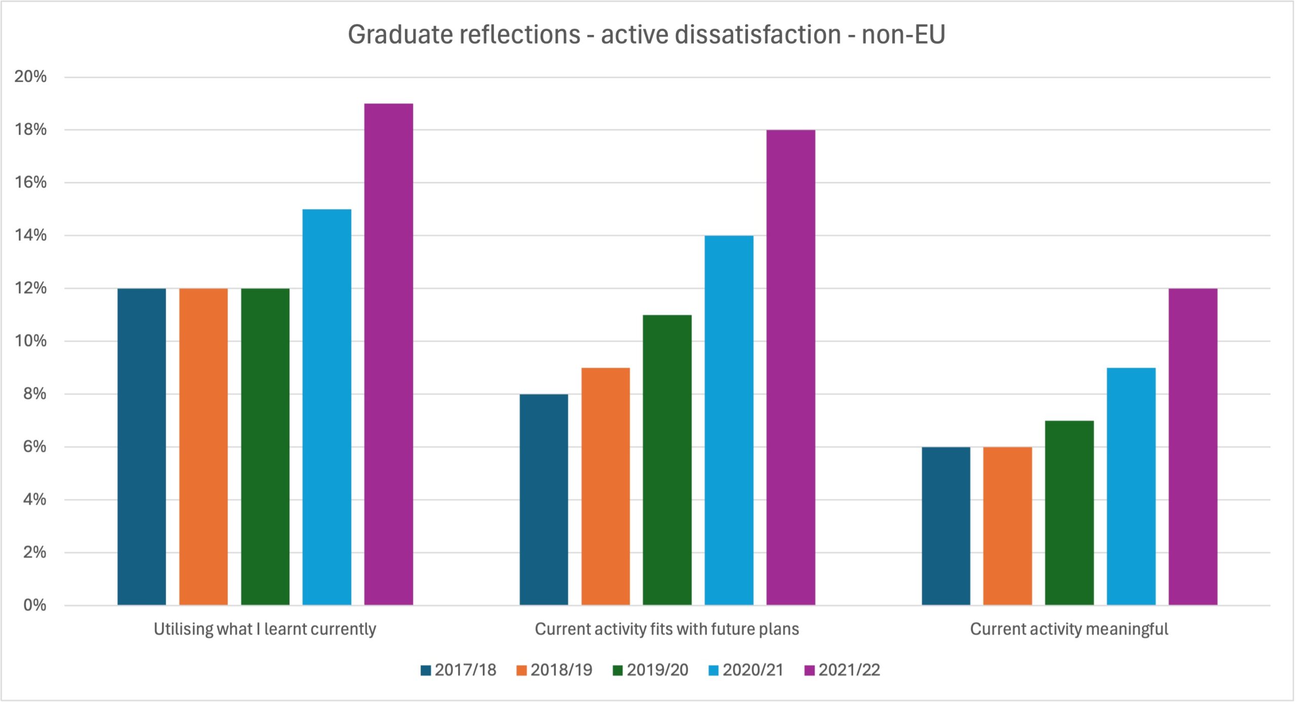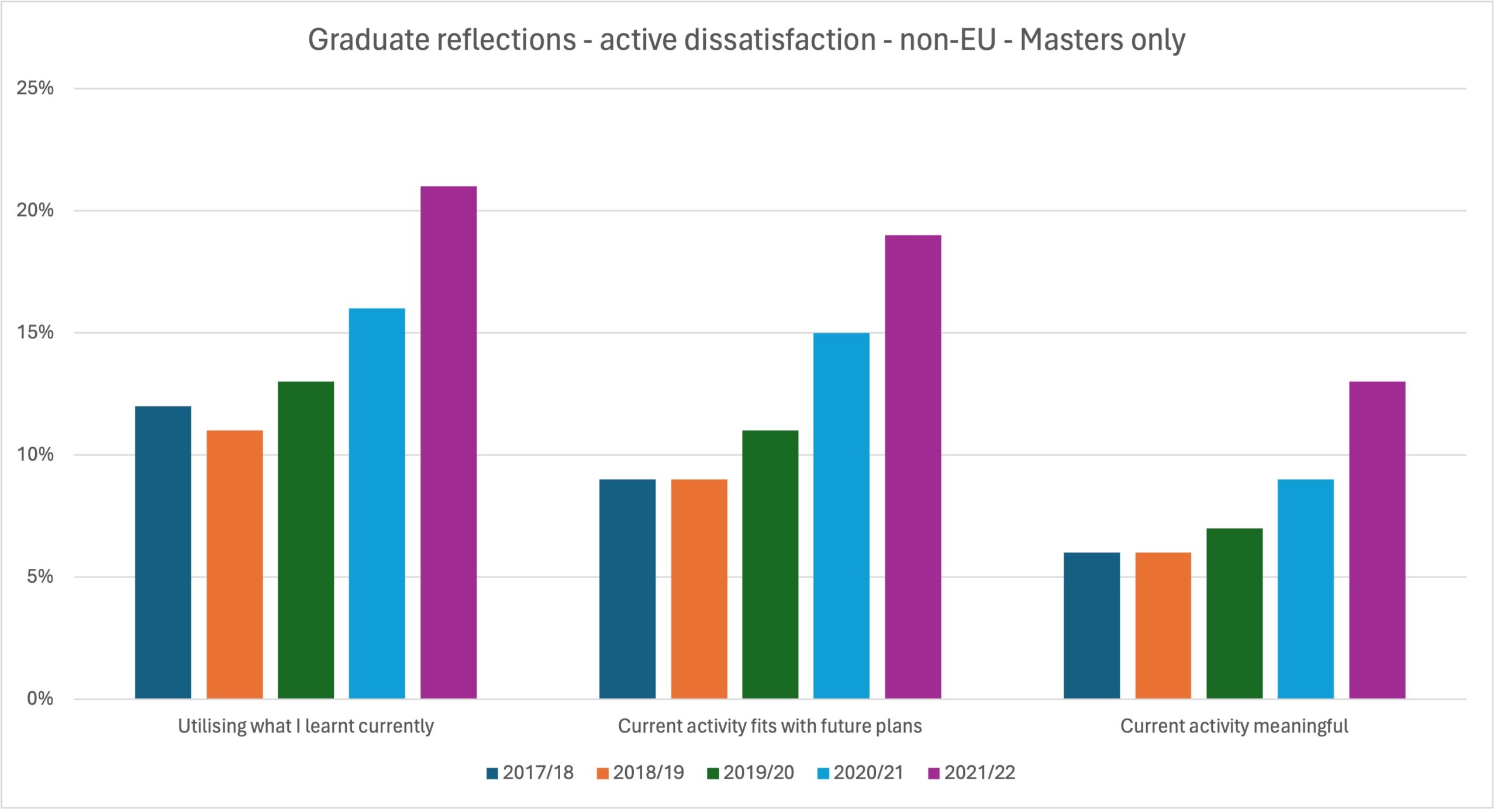If we look at this year’s Graduate Outcomes results and active dissatisfaction with the three “reflections” questions, there’s been a gentle rise since the survey’s introduction: