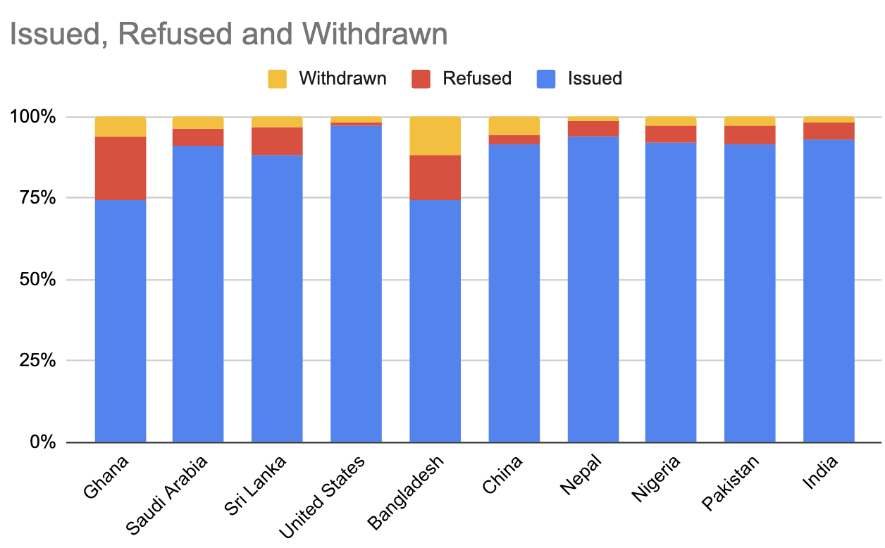 Those withdrawal and refusal rates by country are always interesting to take a look at. Here’s the proportions for the top 10 countries: