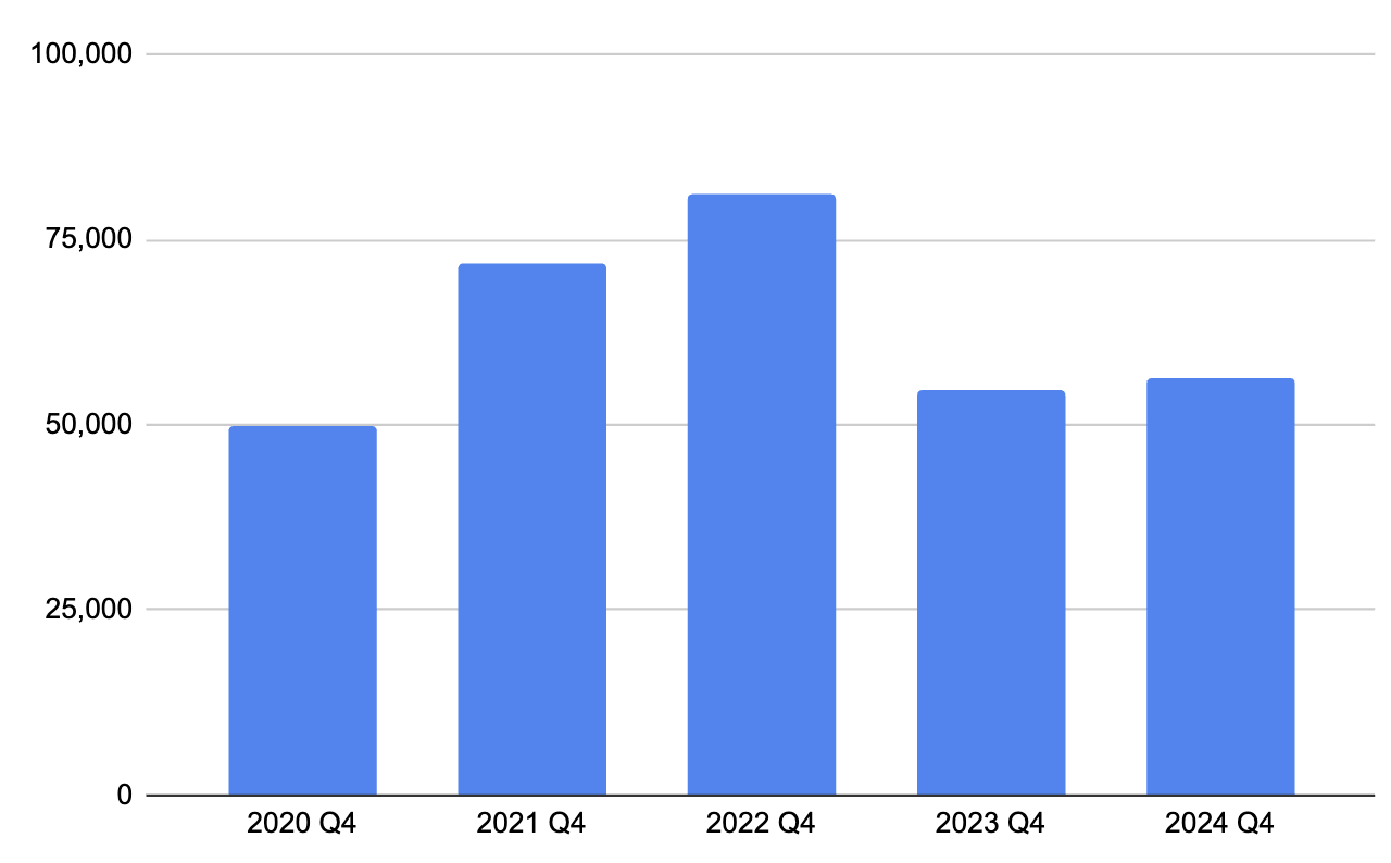 As ever, we get both full year-end figures for 2024, and the quiet-ish (but crucial January start) quarter 4 of 2024 – but the headlines couldn’t be clearer.
