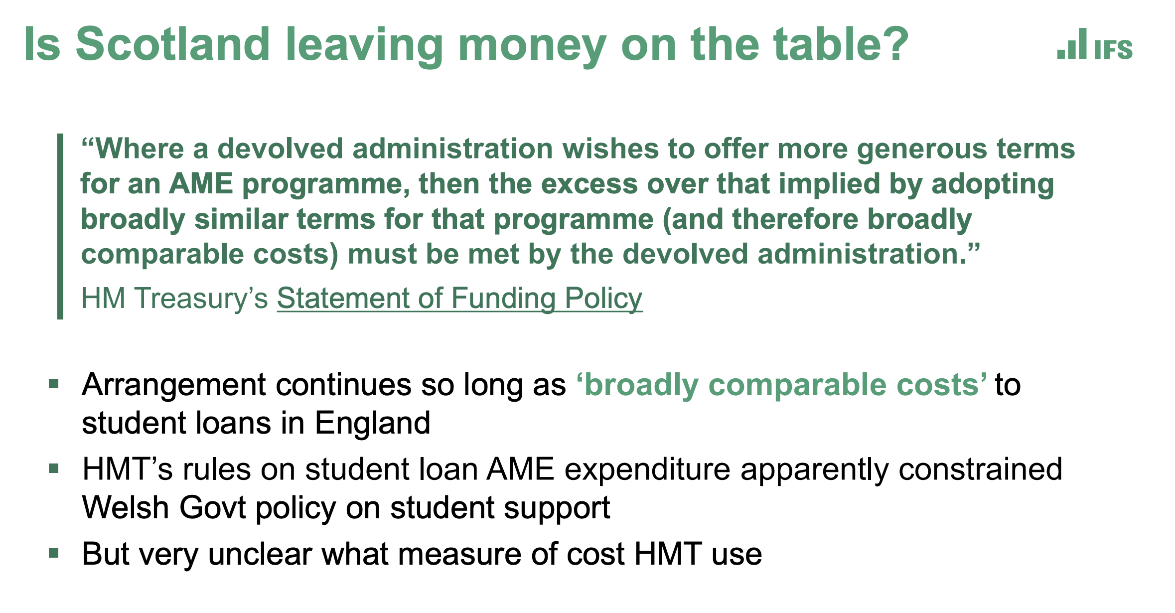 Scotland is comfortably within the Treasury comparability test on the lending side. Whatever is constraining Scottish generosity on maintenance, it is not the Statement of Funding Policy.