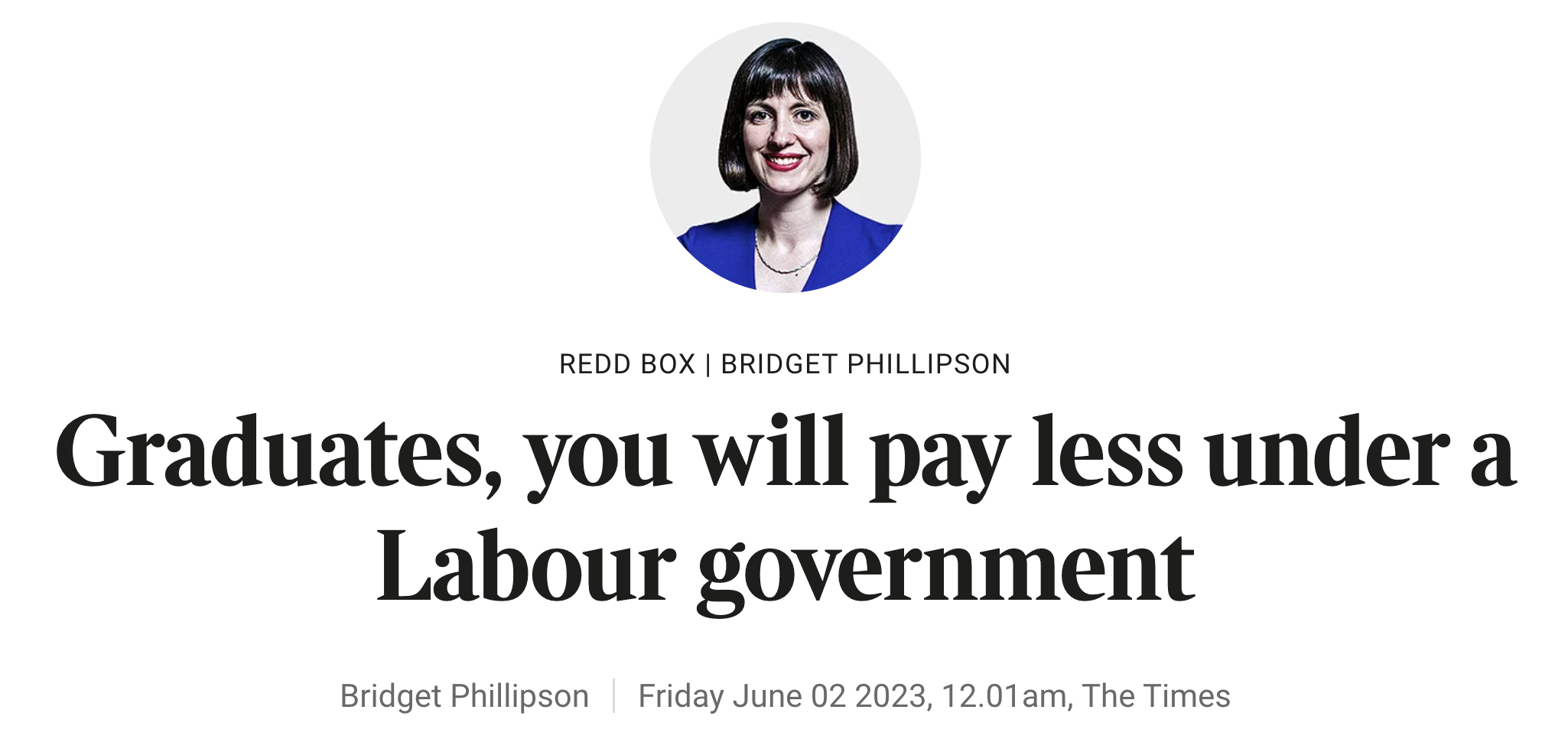 In that article – under the headline “Graduates, you will pay less under a Labour government” – she referred to modelling showing that the government could reduce the monthly repayments for every single new graduate:
