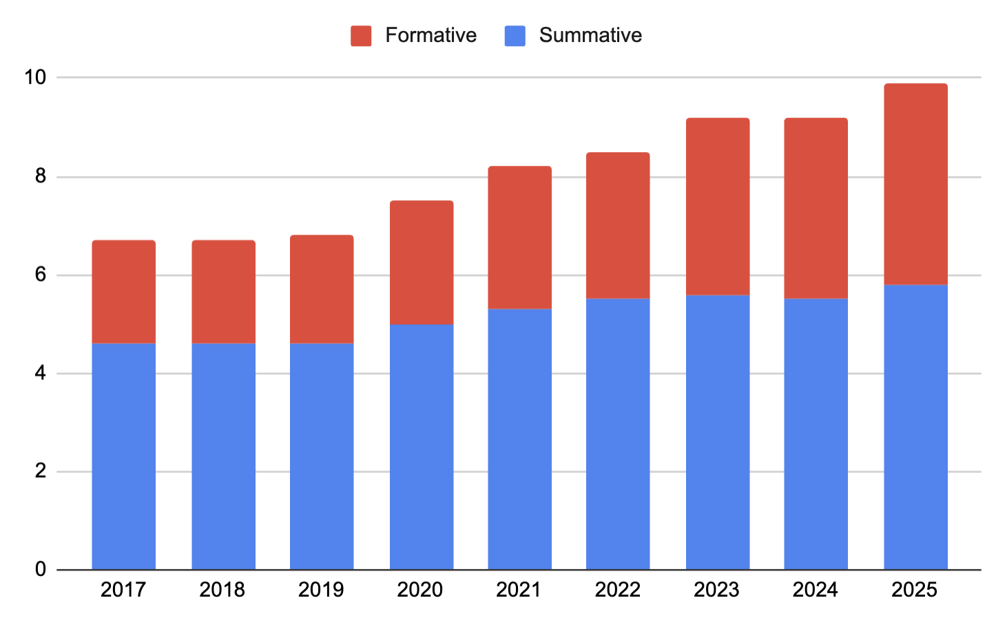 To be fair, that chart doesn’t appear – I’ve stacked formative and summative assignments to show a total. But when thought about in the context of this chart, there’s an obvious problem: