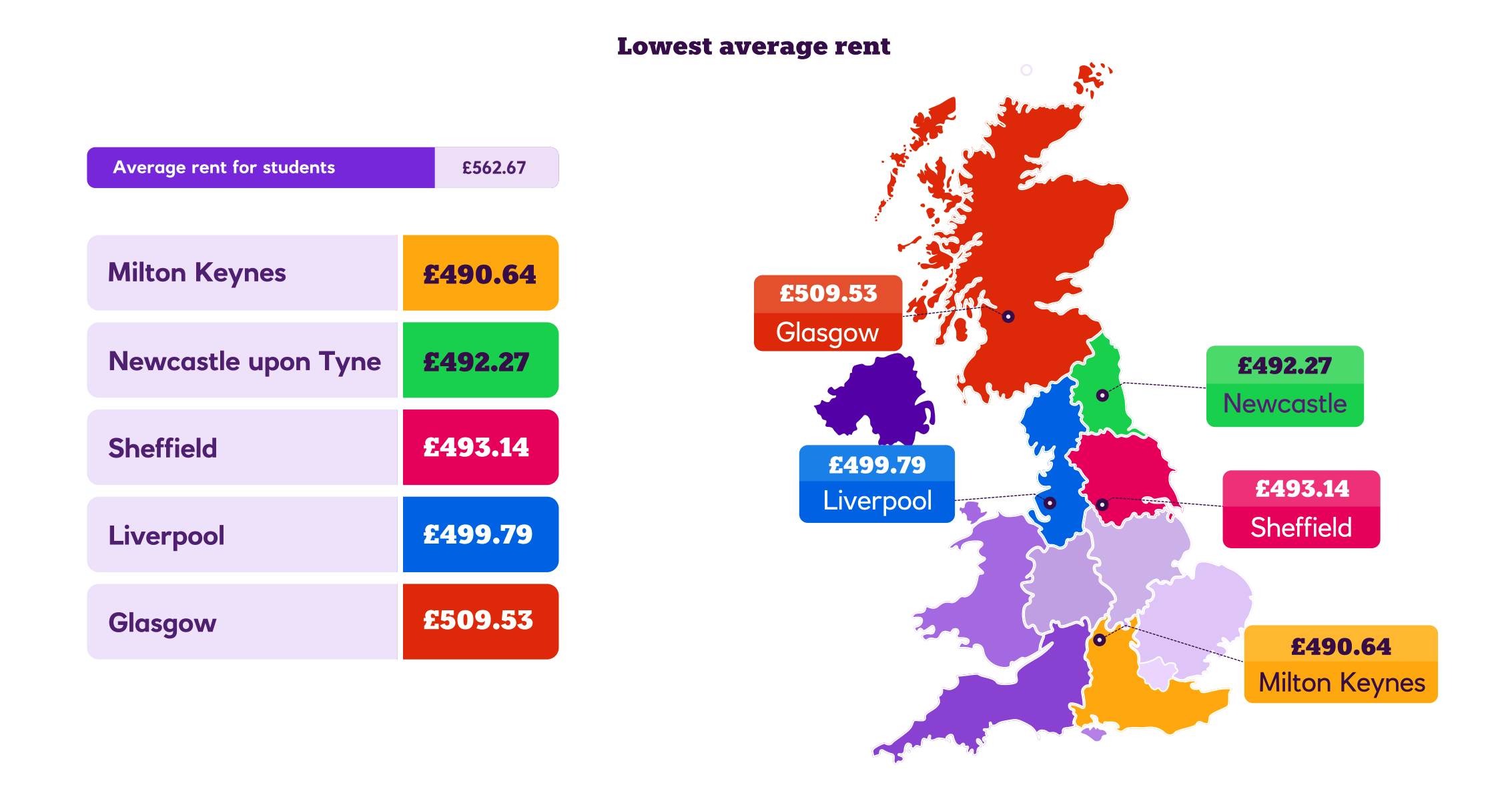 It produces graphics like this, which seem to be suggesting that the famously inexpensive Glasgow student rental market is the UK’s fifth cheapest. Or at least it is for the 50 or so students (it could me more, we”re not told) that reported out of the circa 70k students in the city.
