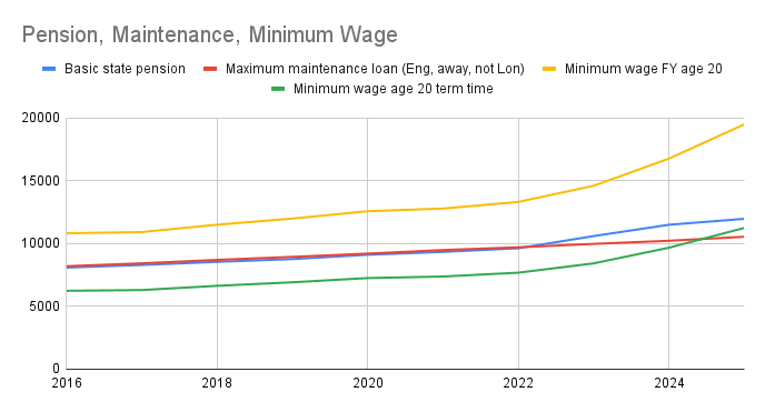But one of the reasons I think it’s important to make the arbitrary comparison is because of how closely the STP rate and the minimum wage used to track the maximum maintenance loan rate – and how far apart they are now, partly because they symbolise, in an unspoken way, what we think people can live on.