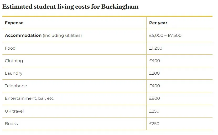 Today i News reports that a page titled “Estimated Living Costs” on the University of Buckingham’s website told students they could expect to spend £1,200 a year on food, £400 on clothing, £200 on laundry, and £800 on entertainment. But it found the website was giving the exact same figures in late 2014 – almost 10 years ago.