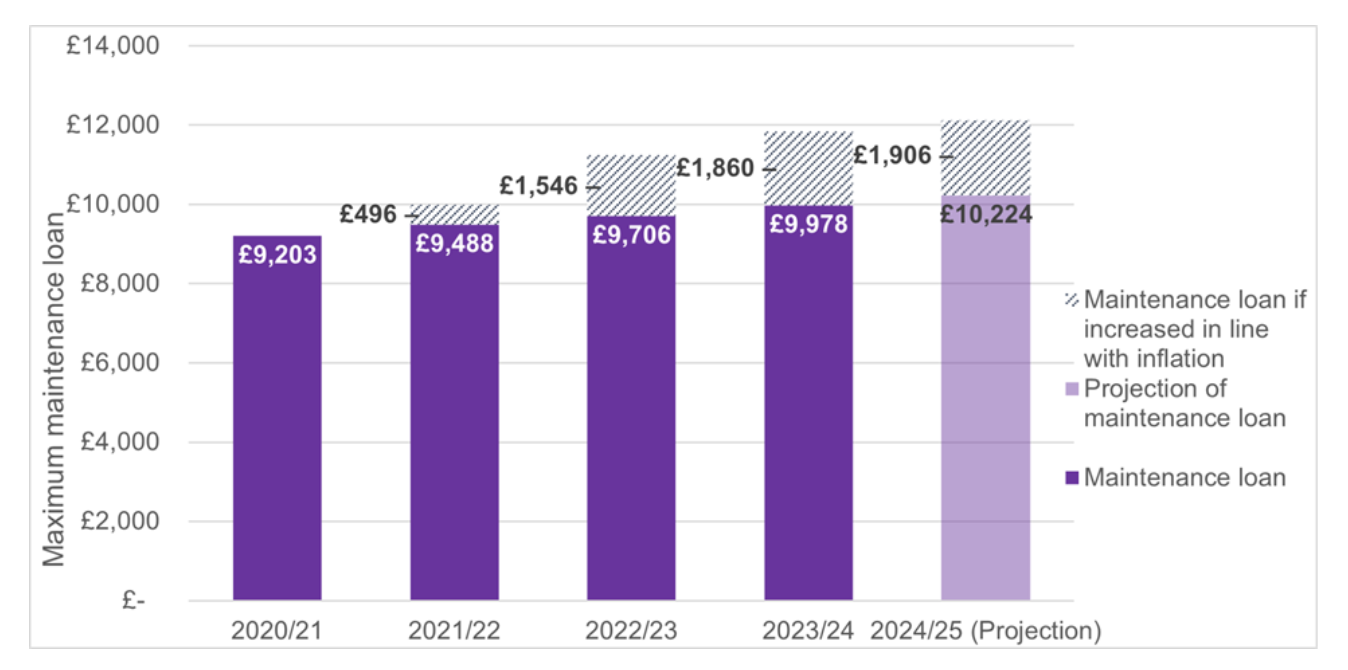 As predicted by and pointed out by the Russell Group earlier in the week, for those on that max it means that they’ll be the best part of £2,000 a year worse off than they should be – all while almost every economist accepts that the basket of goods a student buys has almost certainly been rising faster than the published rates of inflation that DfE seem determined to ignore.
