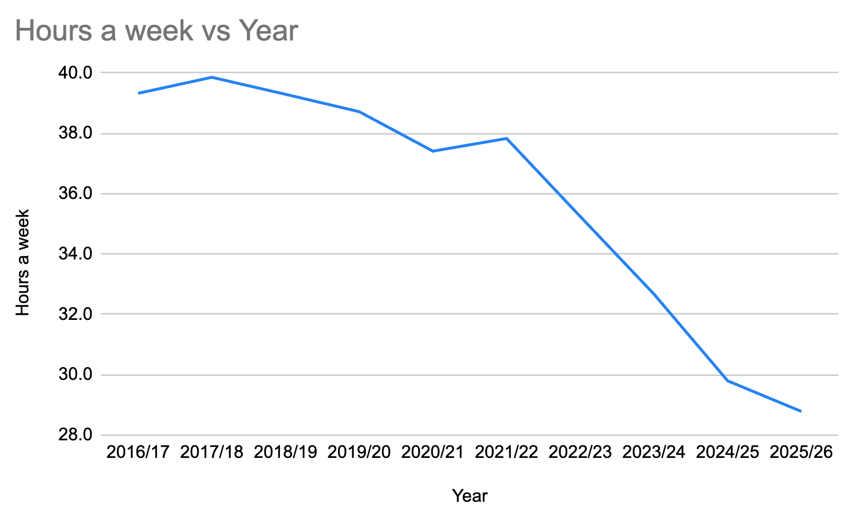 The result is that without additional support, students undertake more paid work (if they can, and if they can find it) and/or skimp on studying. The good news is that study time, according to the HEPI/Advance HE Student Academic Experience Survey, has been consistently at or around 33 hours over the decade.