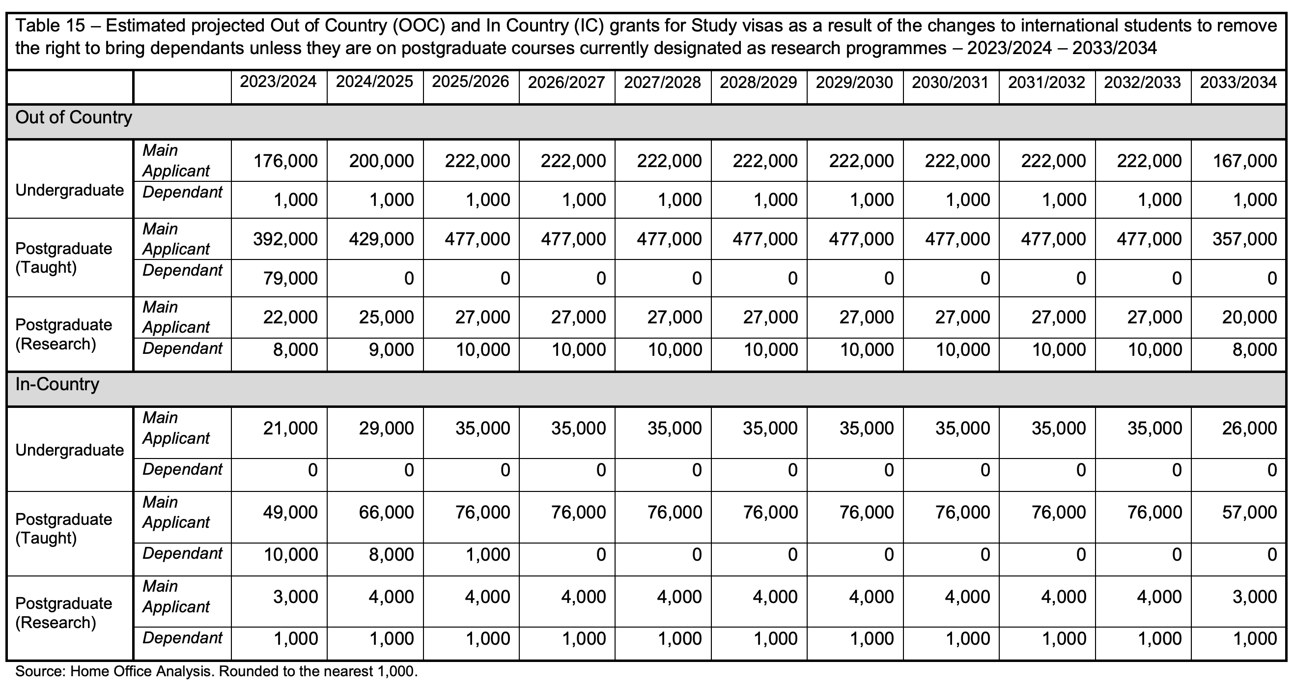 A more detailed impact assessment had been produced for the changes affecting the student route – but was “still awaiting final Departmental clearances.”