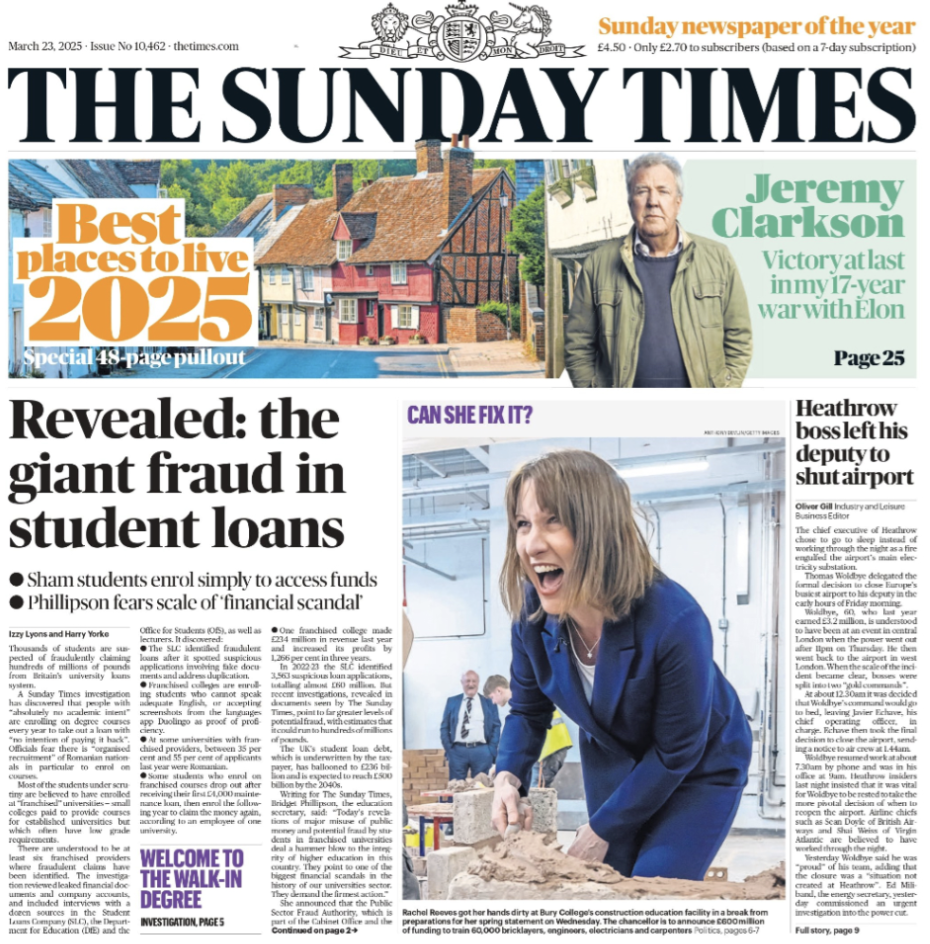 Franchising has finally hit the headlines – the “opaque corner” now has a spotlight on it – and Phillipson has announced that the Public Sector Fraud Authority, which sits under the Cabinet Office and the Treasury, will be given the job of investigating the suspected exploitation of the student loan system.