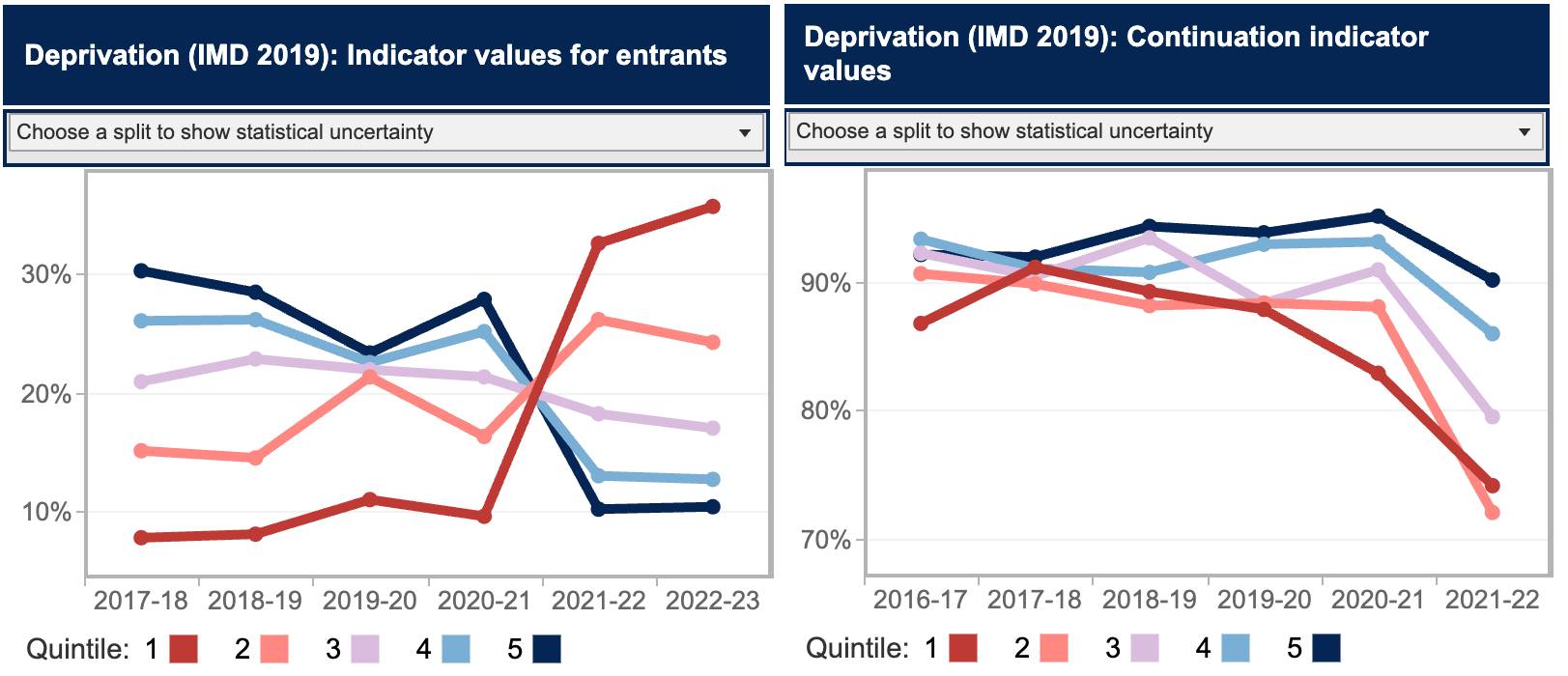 We could look at the outcomes performance of franchised-to providers – if it wasn’t for the fact that OfS has been refusing our FOI requests for months on the basis that “premature disclosure” of numbers that it already includes in franchised-from dashboards, DiscoverUni profiles and assessments of performance would “prejudice public affairs” and “misallocate staff resources.” That’s one way of looking at it.