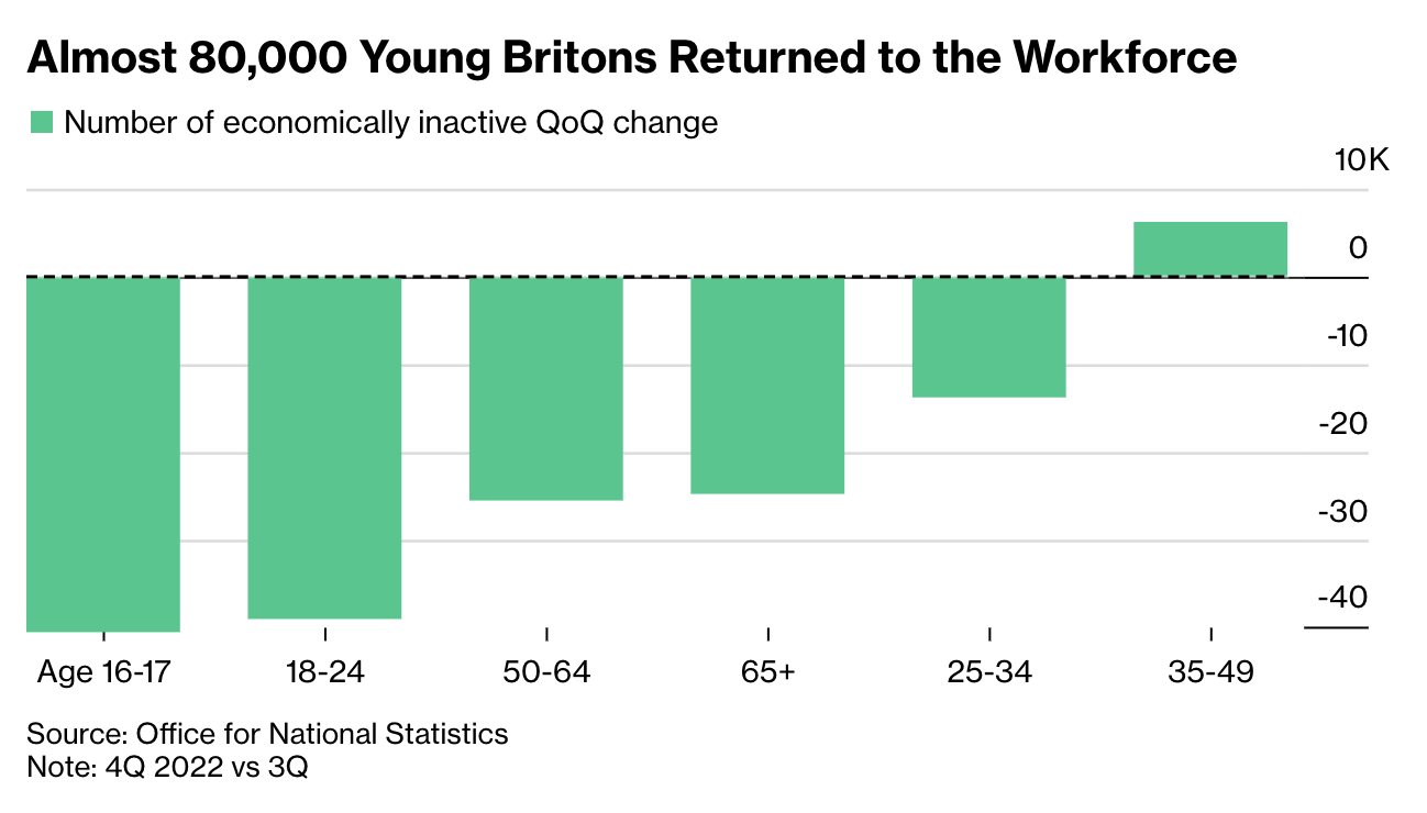 When the quarterly numbers appeared last week, Bloomberg reported that young people returning to the workforce underpinned a record net increase in the number of people coming back into the workforce, with “134,000 fewer students in the economic inactivity figures” compared to the previous three months.