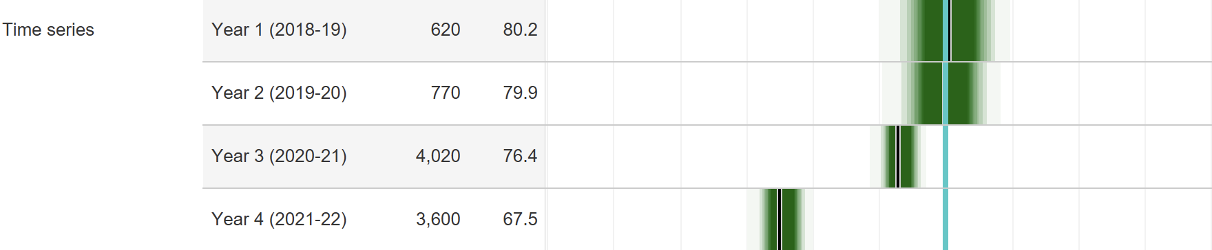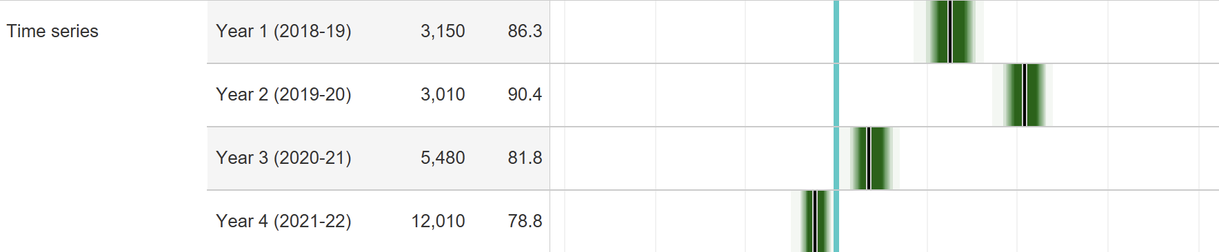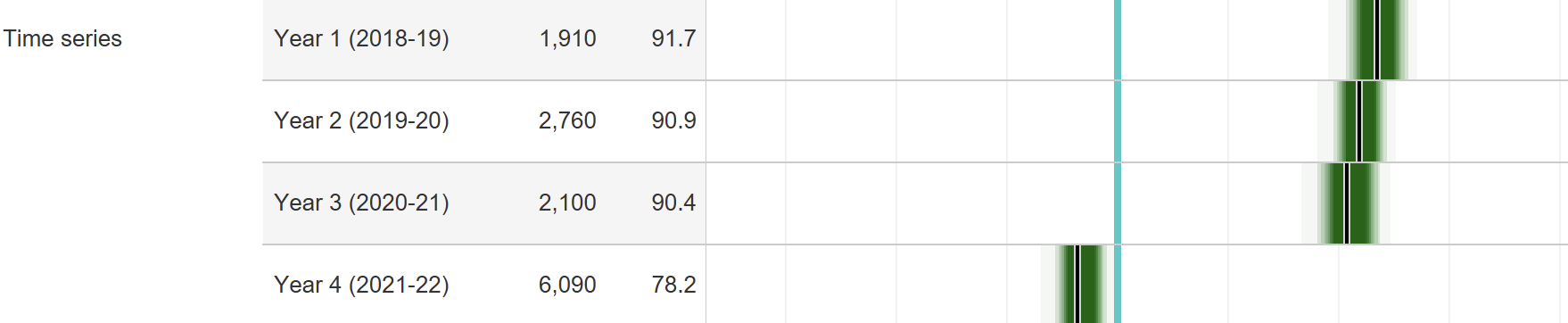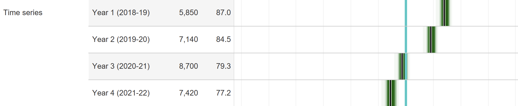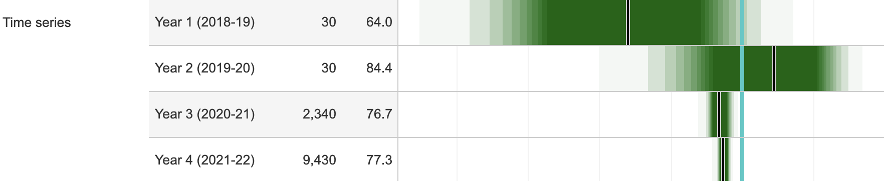 It starts to look like this provider has a group of students and a group of courses in a particular location whose outcomes haven’t changed much at all. Here’s its directly taught population 4 year aggregate: